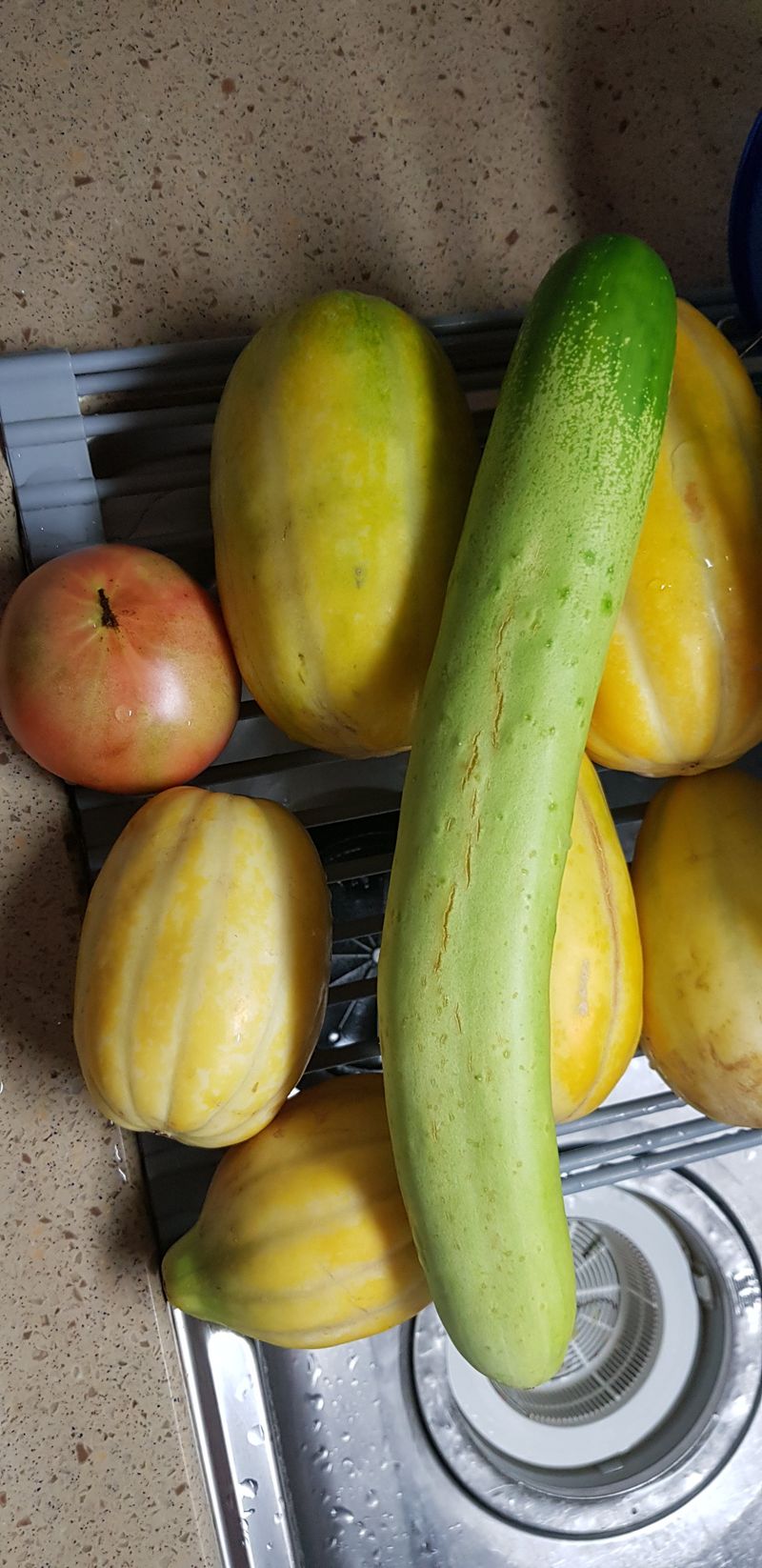 모처럼비그치고 밭에가서 수확해온야채.과일들~ 날짜오류19일건데~ㅠ
