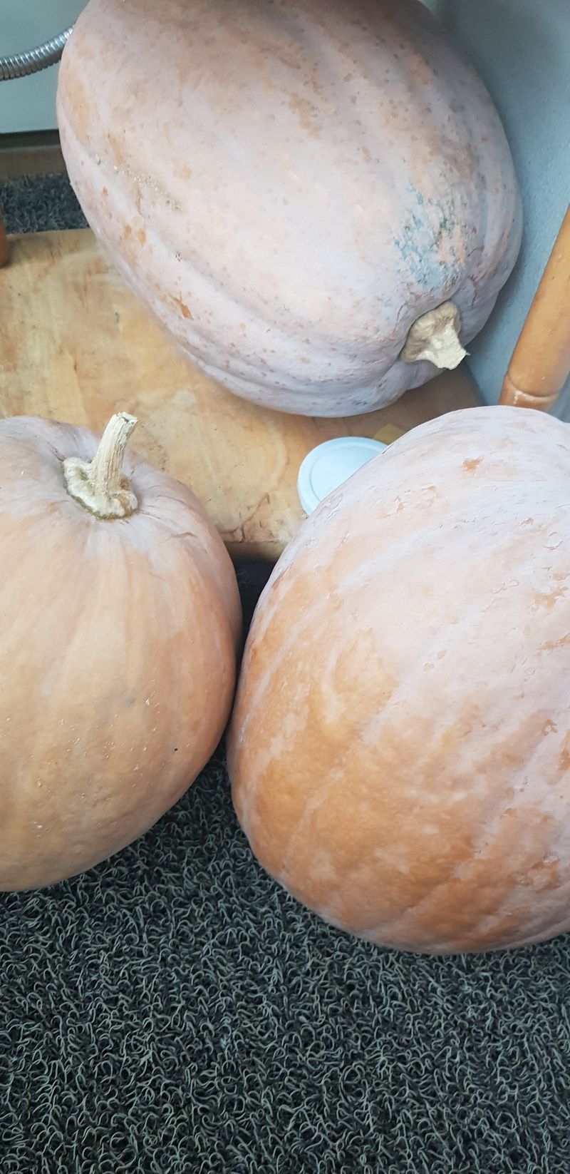 몇일전 호박이 누렇길래 몇개만 수확해 왔어요,호박껍질에 분이많이 나네요^^