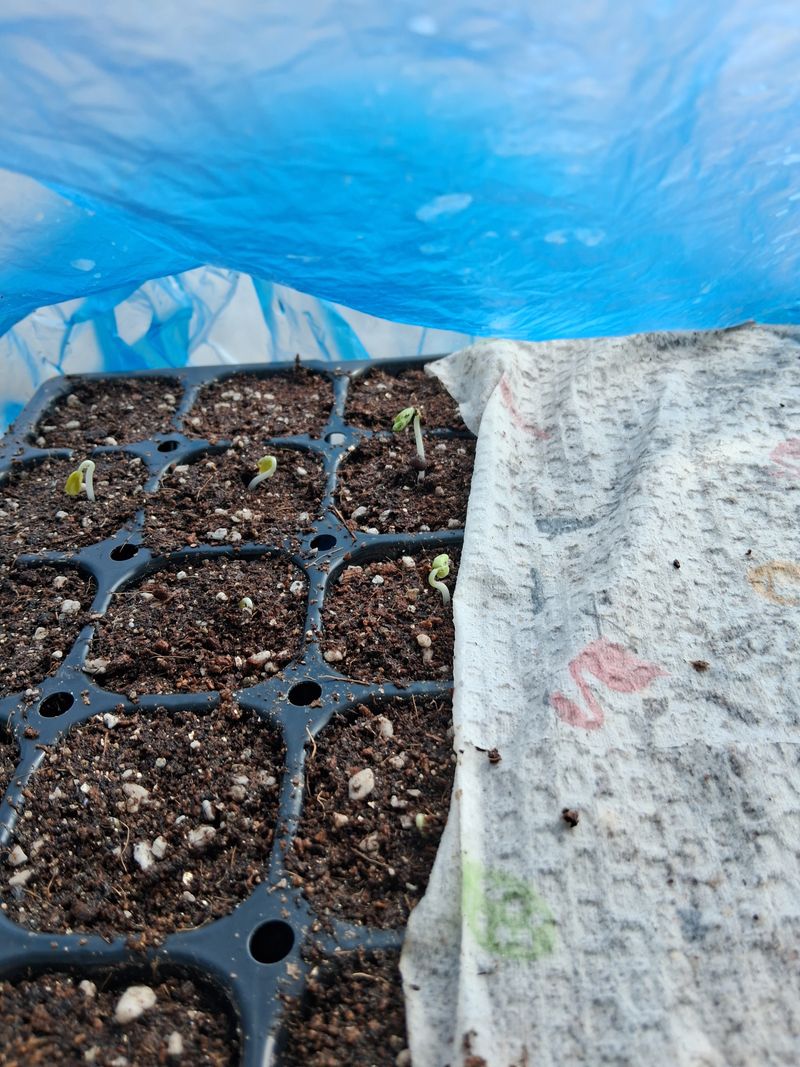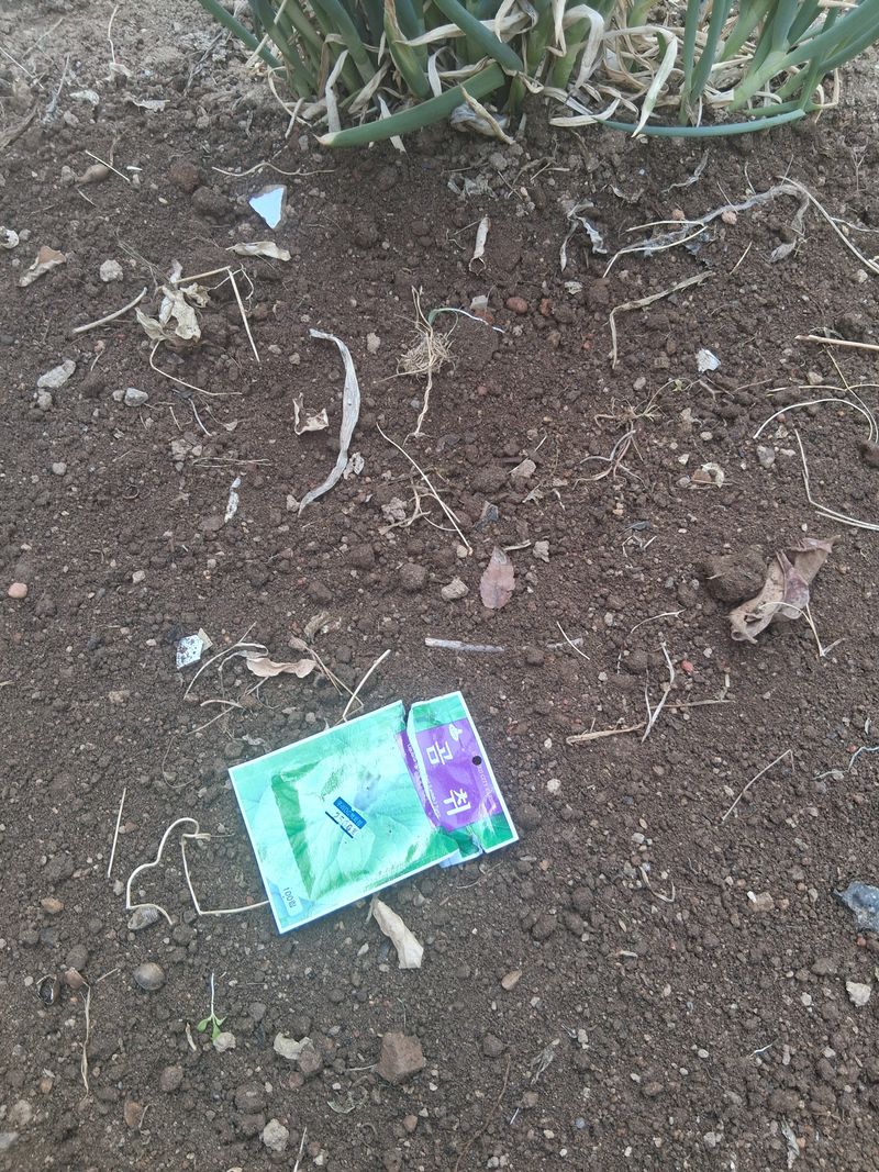 벌꿀장호박 싹틔어서 구덩이 넣고 신문으로 덥어붐 마늘 칼붕 옆면시비