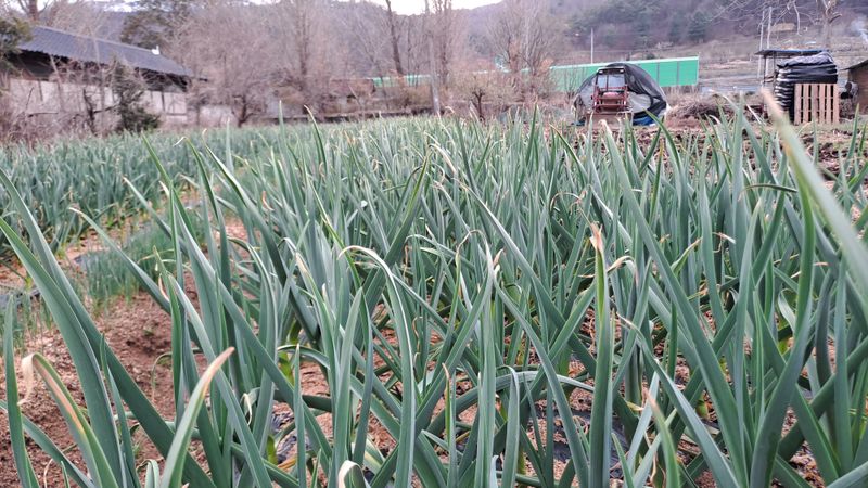 마늘부직포제거 요소추비살포 뿌리썩음병약 및 살충제입제살포 제초작업