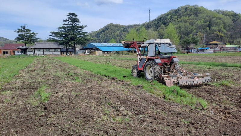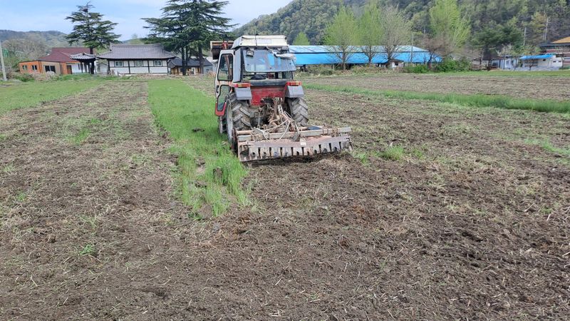 마늘포장 로타리 및멀칭 비료2퇴비30유박3포