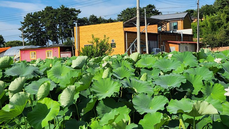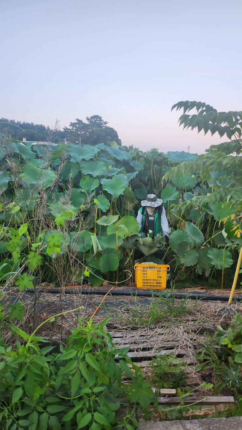 귀농14년차 지하120m에서 천연 암반수 사용하여 (GAP인증) 연근재배 연잎,연꽃을 수확후, (Haccp인증) 연잎밥 가공 생산 판매및, 체험장:연잎밥짓기,연근(잎)차.조청, 천연비누 만들기등 진행하고 있습니다. 친환경농업에 진행중--♡찹쌀 신동진쌀 대두~~