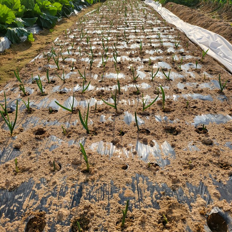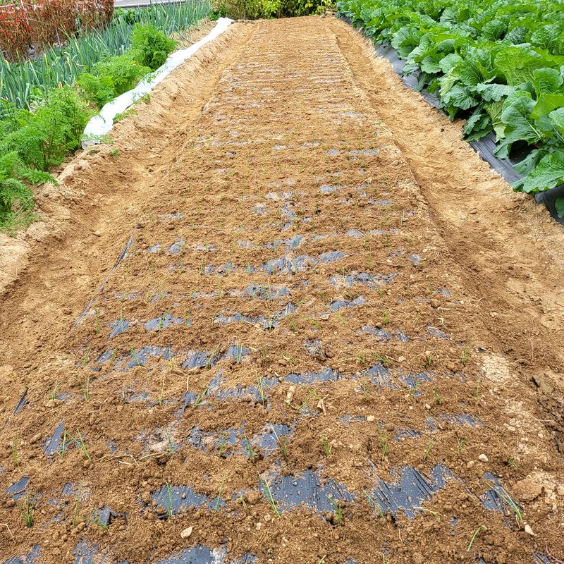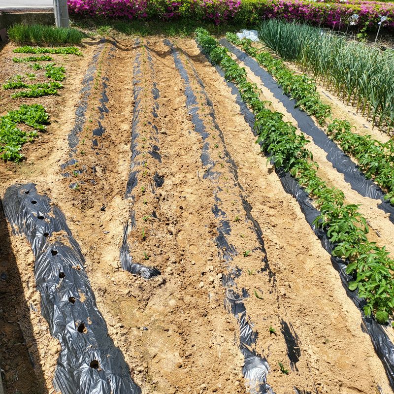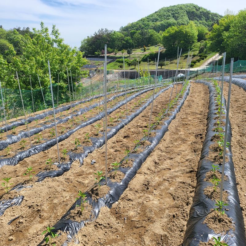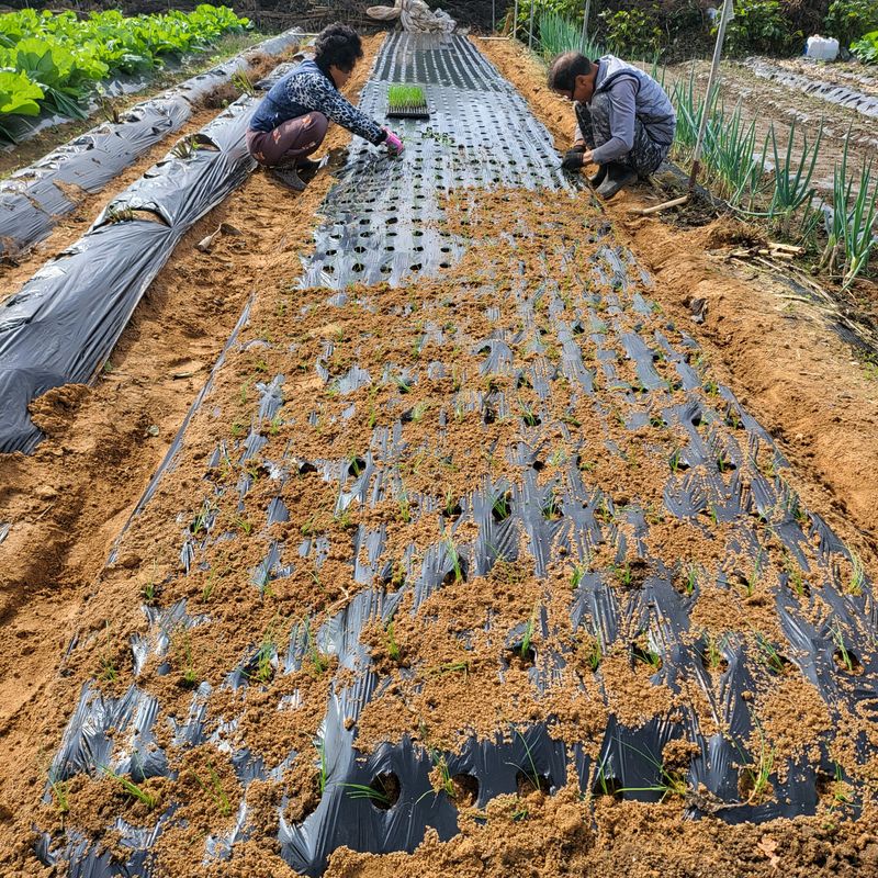 대파 200주짜리 1판 10,000원 구매 -고추 심었던 밭에 땅 파고 완숙퇴비,비료,토양살충제,살균제 뿌리고, 참깨 비닐 멀칭, 흰대가 많도록 구멍 깊게 뚫어 대파모종 심고, 물주고 흙덮기