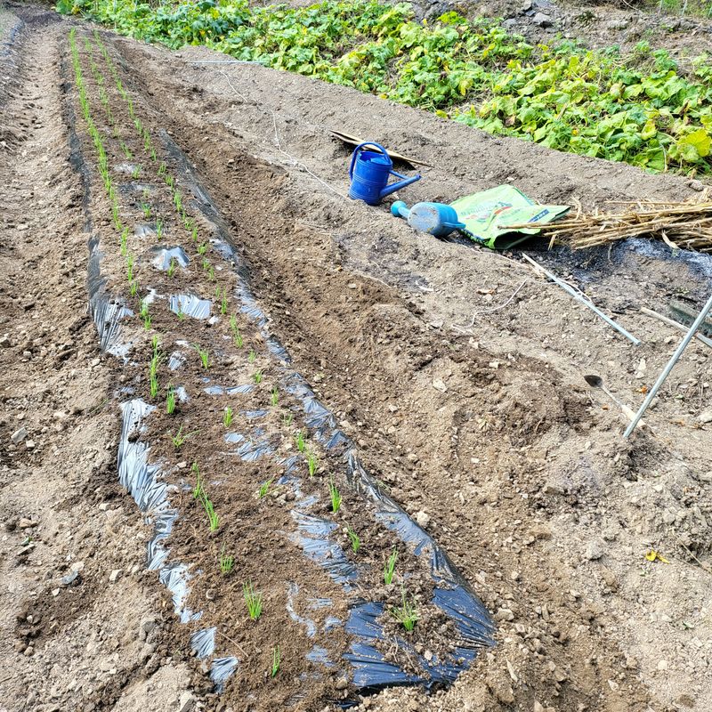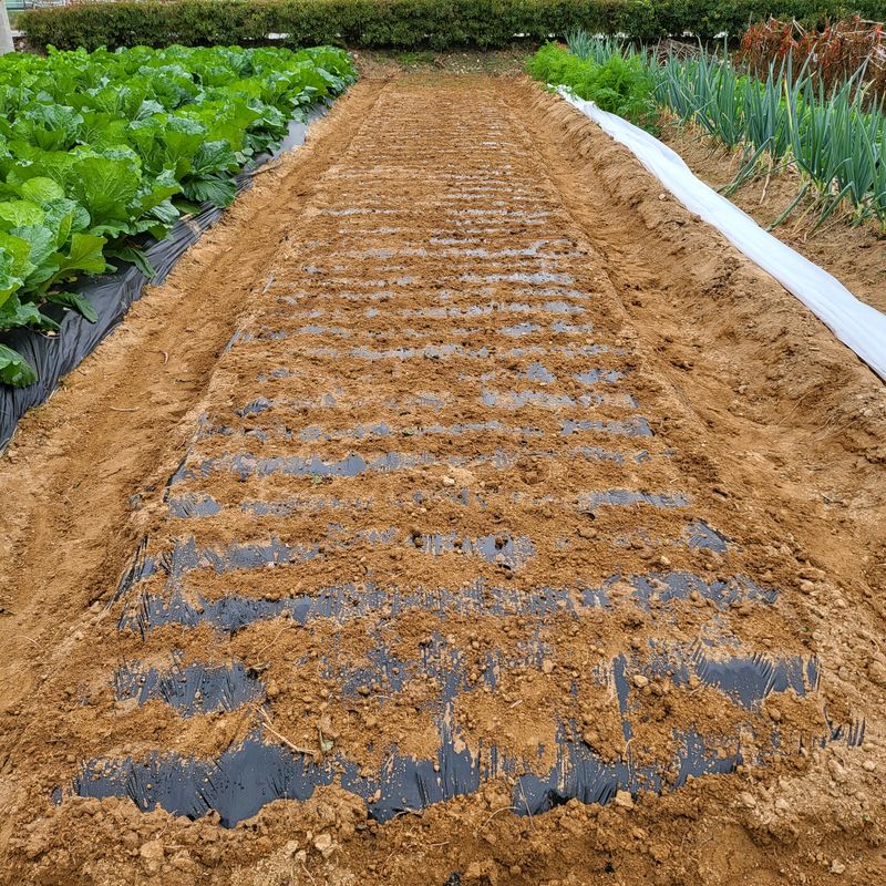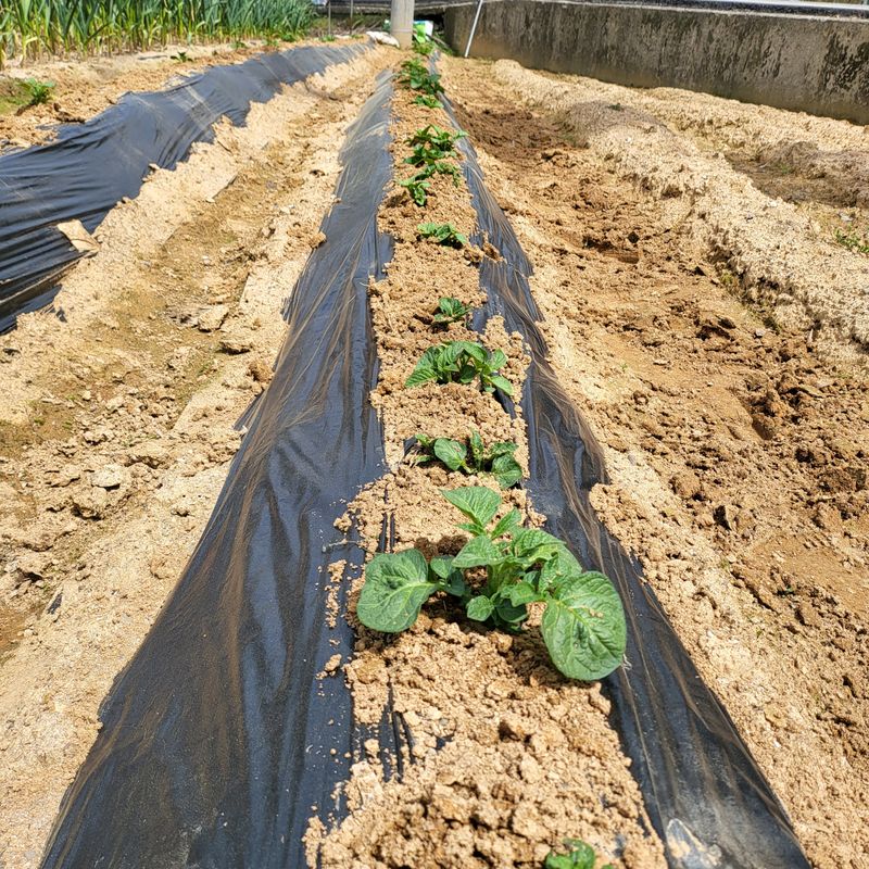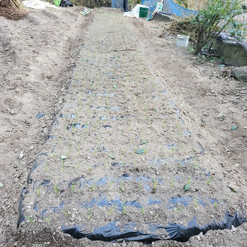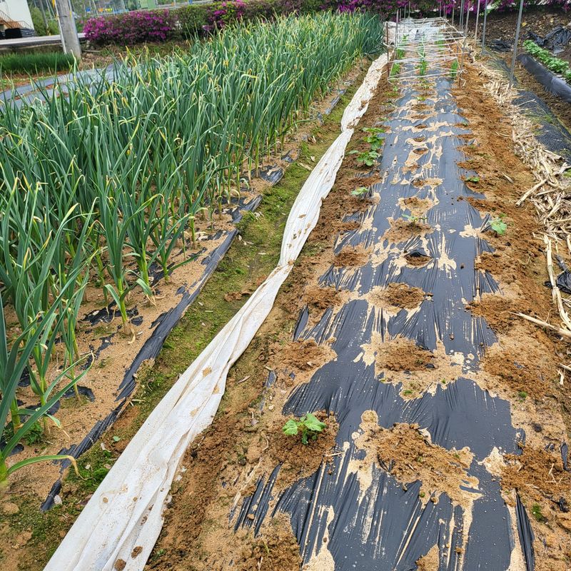대파 200주짜리 1판 10,000원 구매 -고추 심었던 밭에 땅 파고 완숙퇴비,비료,토양살충제,살균제 뿌리고, 참깨 비닐 멀칭, 흰대가 많도록 구멍 깊게 뚫어 대파모종 심고, 물주고 흙덮기