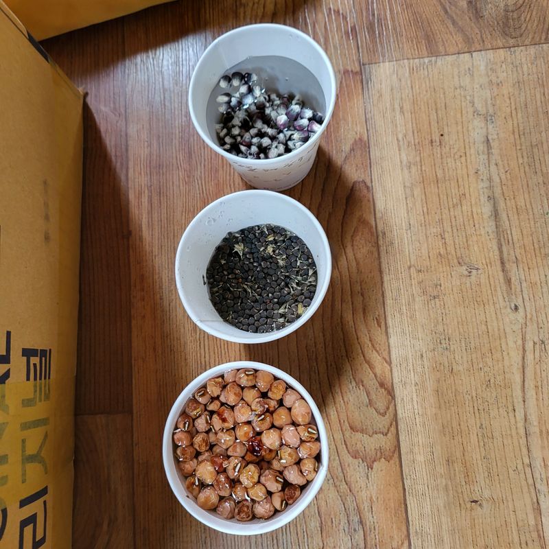 1.<서리태 청자 5호 포토 파종> 가장 최근 개발한 청자 5호 2봉지 구매 물에 불려 포토 파종 25개×7판(1알씩)=167개 2.<아리수 비덩굴성 팥 포토 파종> 16개× 7개×1판(2알씩)=112개 20개×10개×1판(2알씩)=200개 25개×9판(3알씩)=...