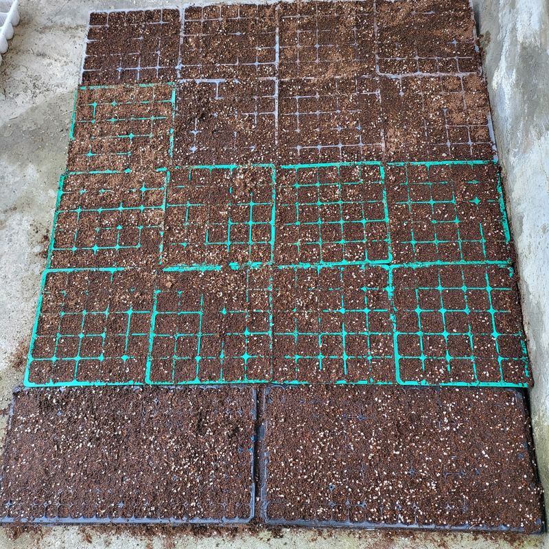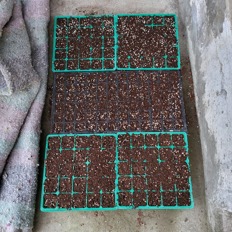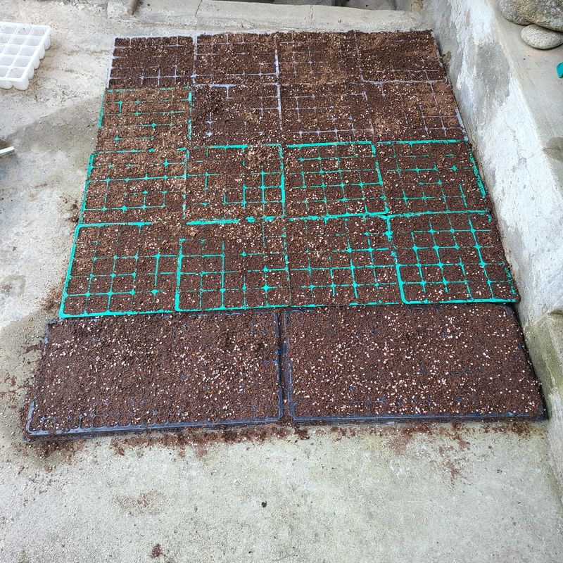 앞서 숙성퇴비 4포 뿌려 파고, 오늘 마늘 전용복합비료 뿌리고 다시 파서 레그로 흙 고르고 평탄 작업 새벽에 종자 물에 4시간 불리고, 종자소독 2시간 소독 건조 오후에 700백쪽 정도 파종. 토양살충제, 살균제 뿌리고 13구짜리 비닐멀칭하여 심고, 물 흥건하...