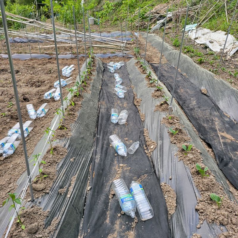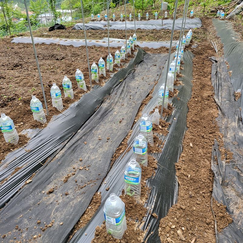 <냉해예방 피티병 보온 씌우기> 너무 부지런해도 탈이다. 모종을 빨리 심어 사서 고생을 하고 있으니 하는 말이다. 그 이유는 다가오는 2~3일 아침 기온이 5°~7°도로 떨어져 산간지역인 이곳은 100% 냉해가 예상 되기에 대책에 비상이 걸렸다. 지난 25일에 모...