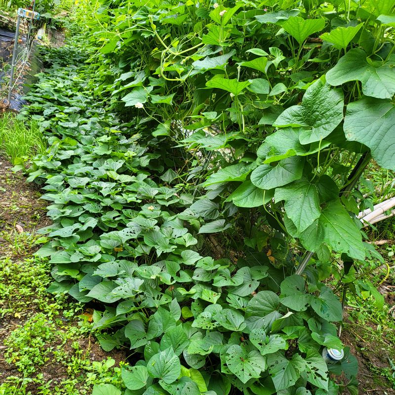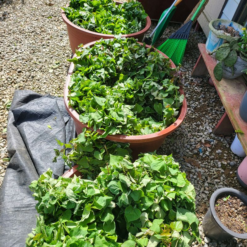 <고구마 순따기> 무성하게 자란 고구마 덩굴을 솎아 내어 순따기를 해주었다. 아마도 8월말~9월초면 고구마 수확이 가능할 것으로 보인다.
