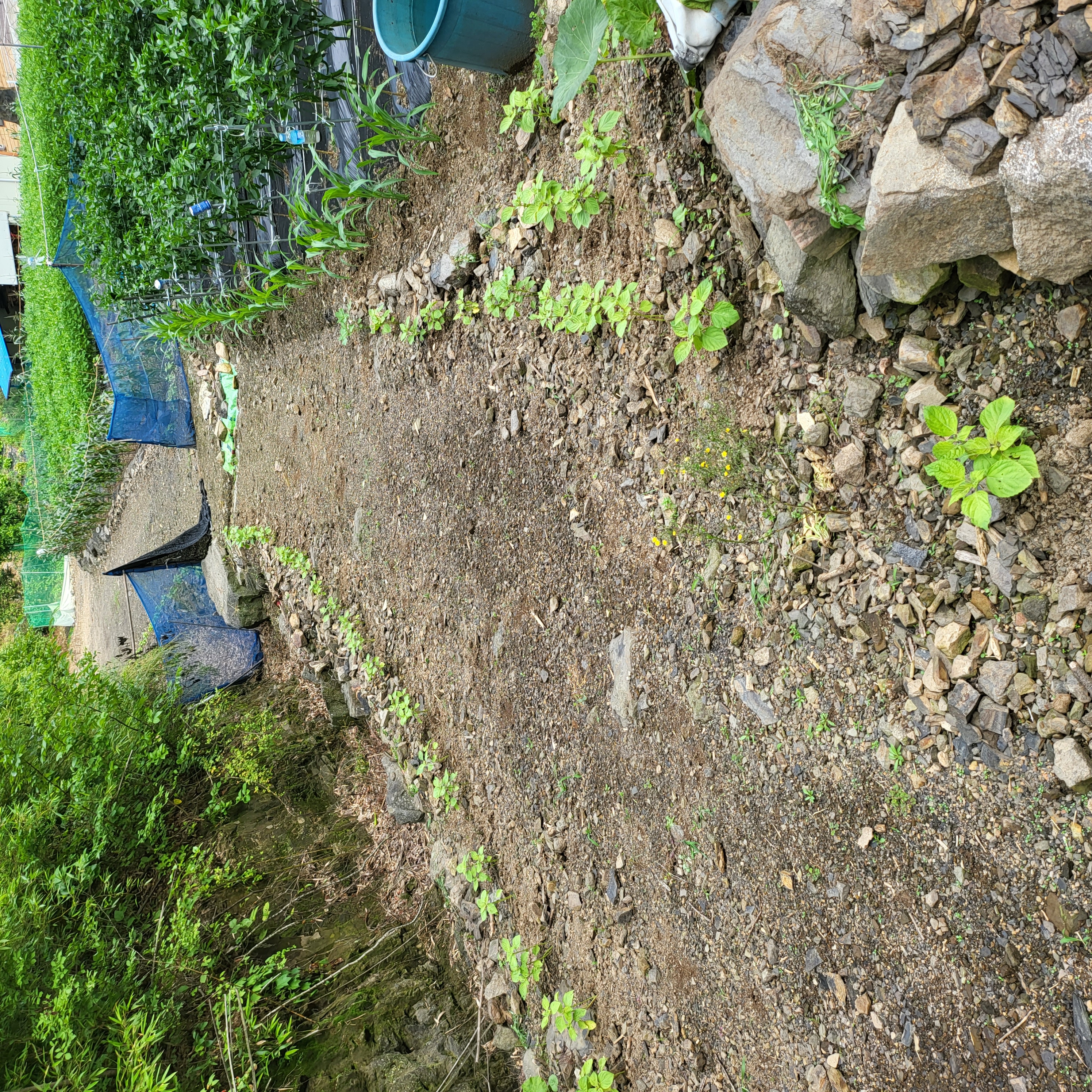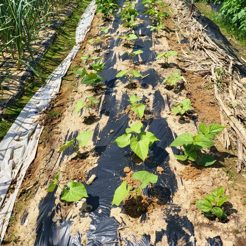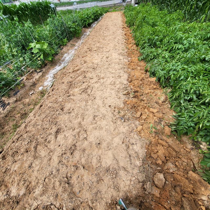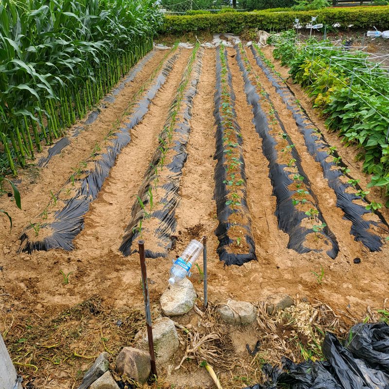 <양파,마늘캔 곳 붉은팥 때우기> 지난 6.6일에 포토에서 옮겨심은 붉은 팥 3줄×60주=180포중 나팔 나팔하니 잘자라고 있다 생각했으나, 가뭄으로 80포 이상이 말라죽어 웃자람 방지 적심해둔 50포기 땜빵 하고, 부족분 30포기는 주말 비온후 씨앗으로 파종예정