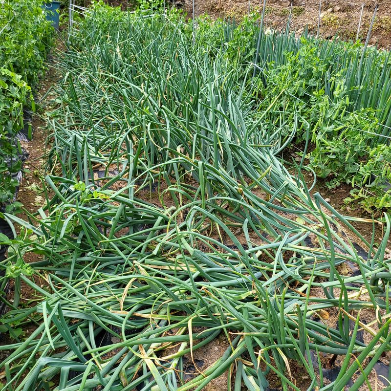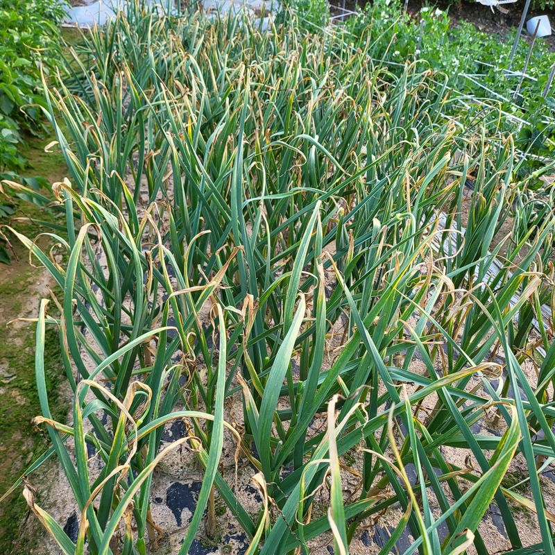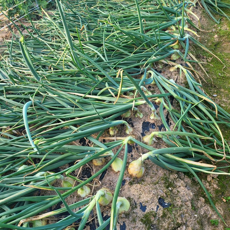 <양파 수확시기 저울질> 양파 2023.10.15파종 도복 2024.05.19모두 쓰러짐 도복이후 많이 자라는 시점. 수확 당일부터 2~3일 날씨가 좋을때 상태를 봐가며 수확한다. 예정일:2024.6.9(일)