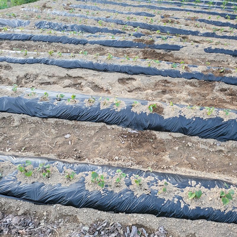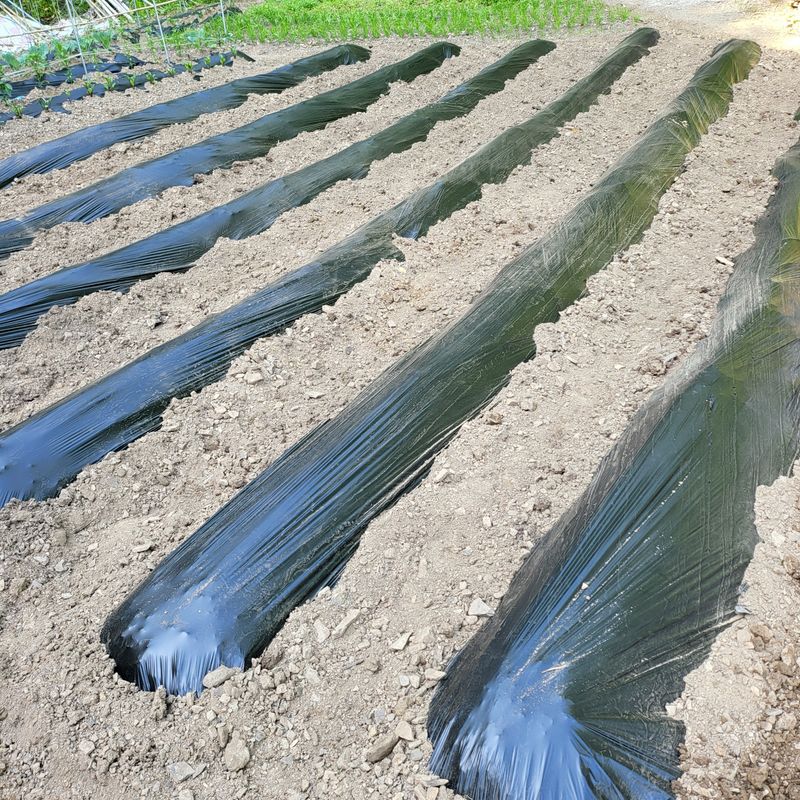 <콩심을 곳 비닐치기> 향후 서리태 청자 5호를 심기 위해 겨울내내 땅파고 돌 골라내서 정성을 들여 왔다. 퇴비,액비 뿌려 가꿔온 텃밭을 다시 파서 두럭을 만들어 래그로 다듬어 비닐멀칭 6줄 만드는데 땀이 비오 듯 흘렸다. 사진을 보면 알겠지만 이 정도면 관리기 수...