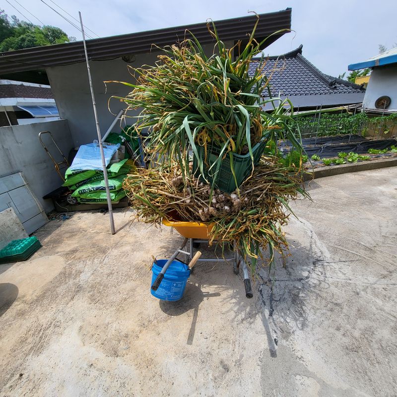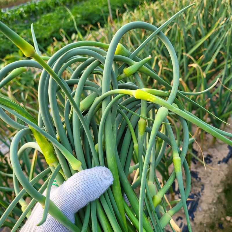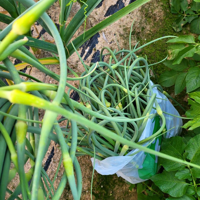 <마늘쫑 2차 수확> 1차 수확때는 마늘쫑이 작았는데 오늘 2차 수확에는 십여개 뽑으면 주먹안이 가득찬다. 이미 쫑에서 꽃이 핀 것도 있어 뽑아주는 시기가 늦은 듯하다. 사실 1차 뽑아주고 까맗게 잊고 있다가 어제 쪽파 수확후 유심히 보니 아니~ 마늘쫑이 또있네...