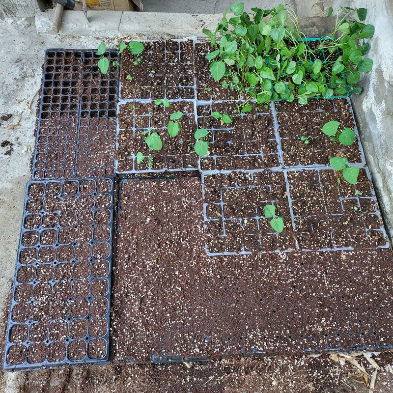 <일반 고구마순 식용 심기> 전년도에 요맘때 심어 일반 고구마 순을 3번이나 수확한 경험이 있어 금년에도 조금 심어봤다. 뿌리가 목적이 아니고 순만 따먹을 계획이다. 앞에부터 신선초, 고수, 방풍나물 씨앗을 받아 파종해볼 계획이다.