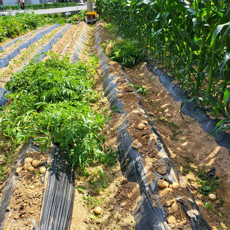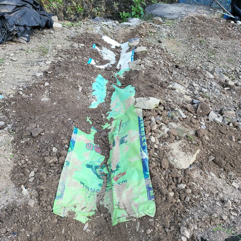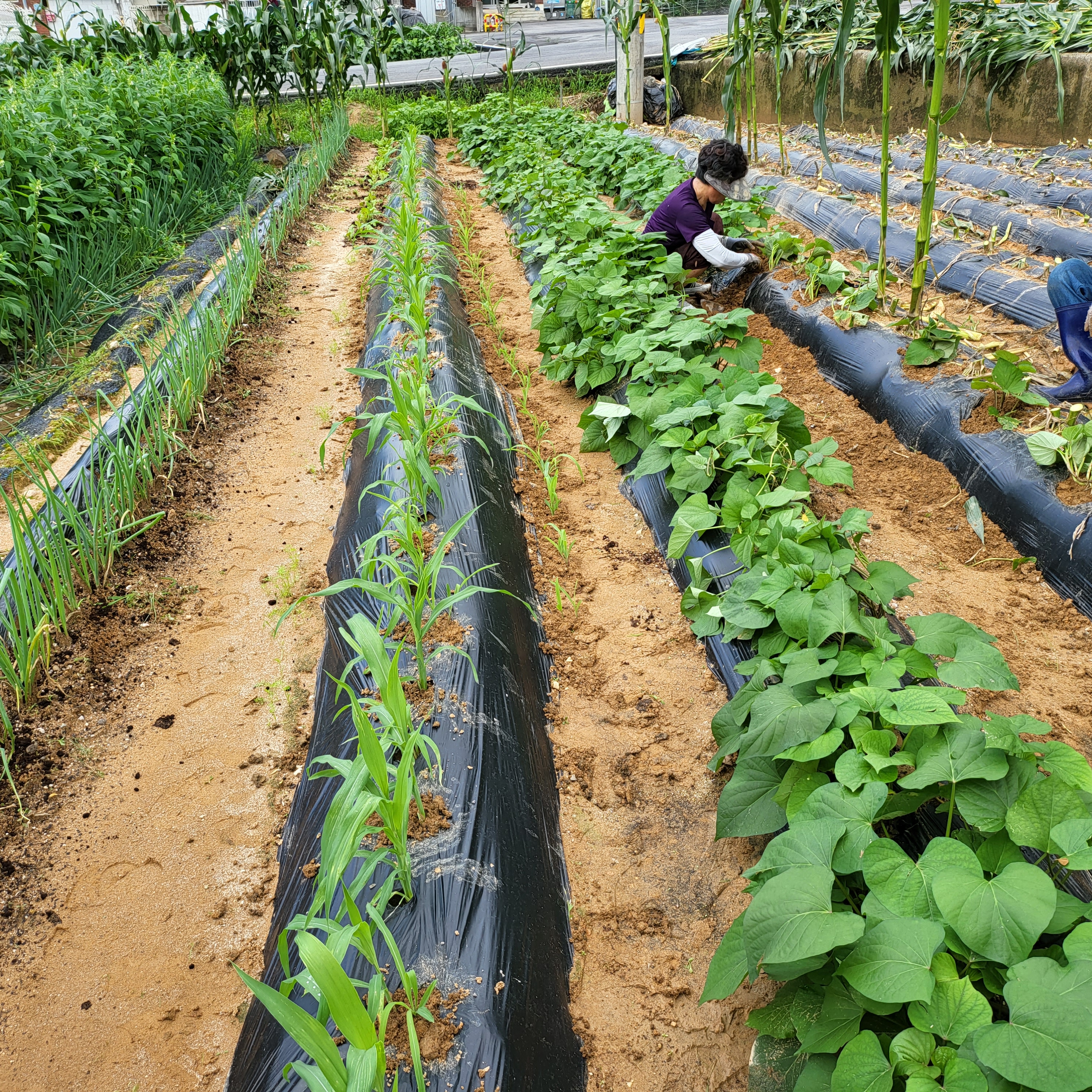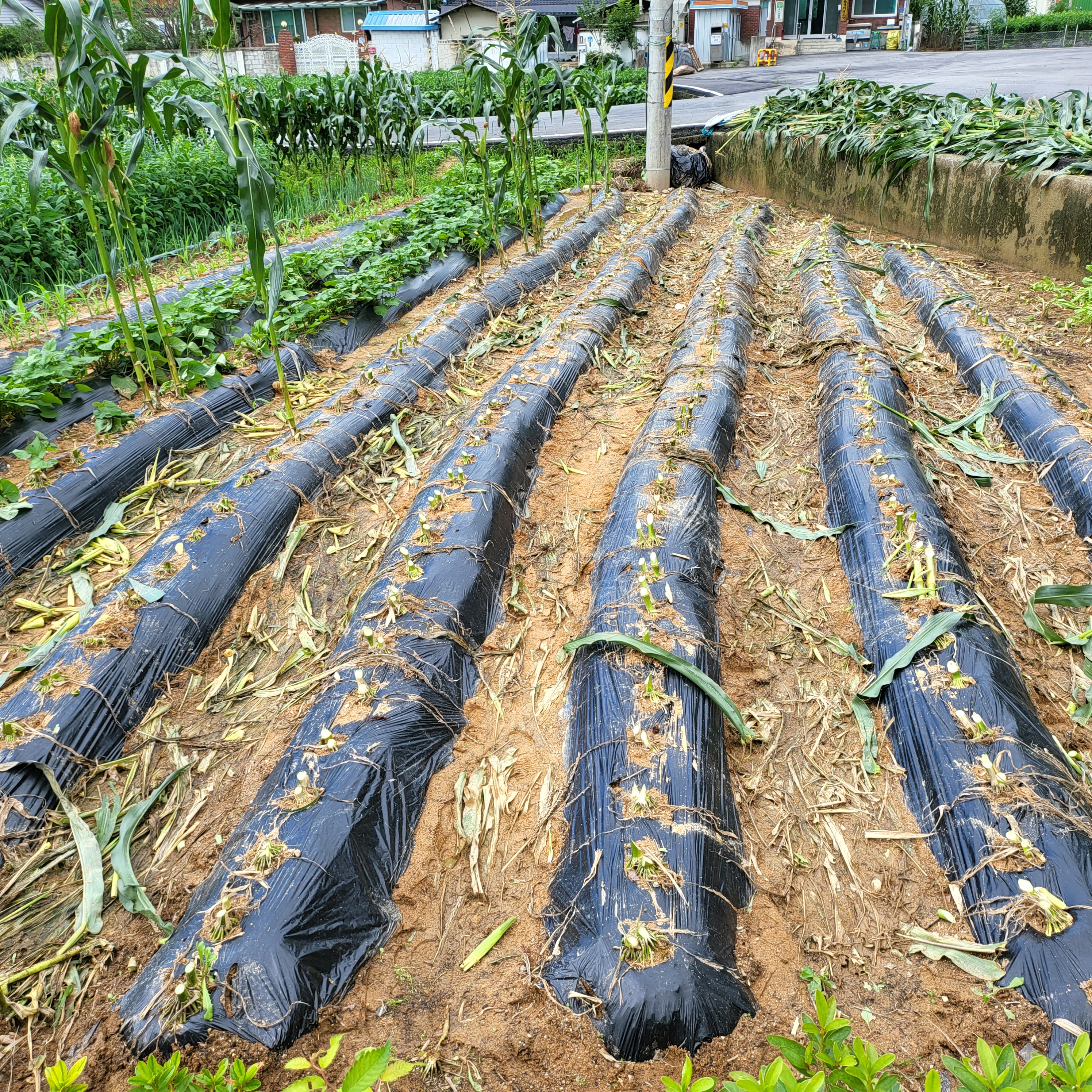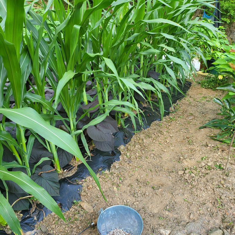 <감자캔 곳 옥수수 3차 정식> 이번 토요일 단비 소식에 ♤감자 2줄 캔 곳에 완숙퇴비, 복합비료 뿌리고 파서 2줄 고랑 만들어 토양살충제 뿌린후 비닐치고, 포토에 파종해둔 흙찰옥수수 70개, 흙찰작은옥수수 40개 =110포기 옮겨심기 ♤엇가리배추 완전히 뽑아내기 ...