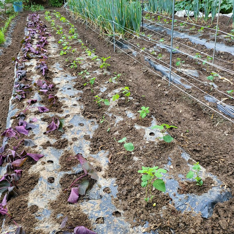 <붉은팥 포토 옮겨심기> 양파,마늘 어제 수확한 텃밭에 이에 대비해 그동안 포토에 심어 길러온 아리수 팥 모종 옮겨심기 어제 두번째 텃밭에 아리수 팥 모종 옮겨심기