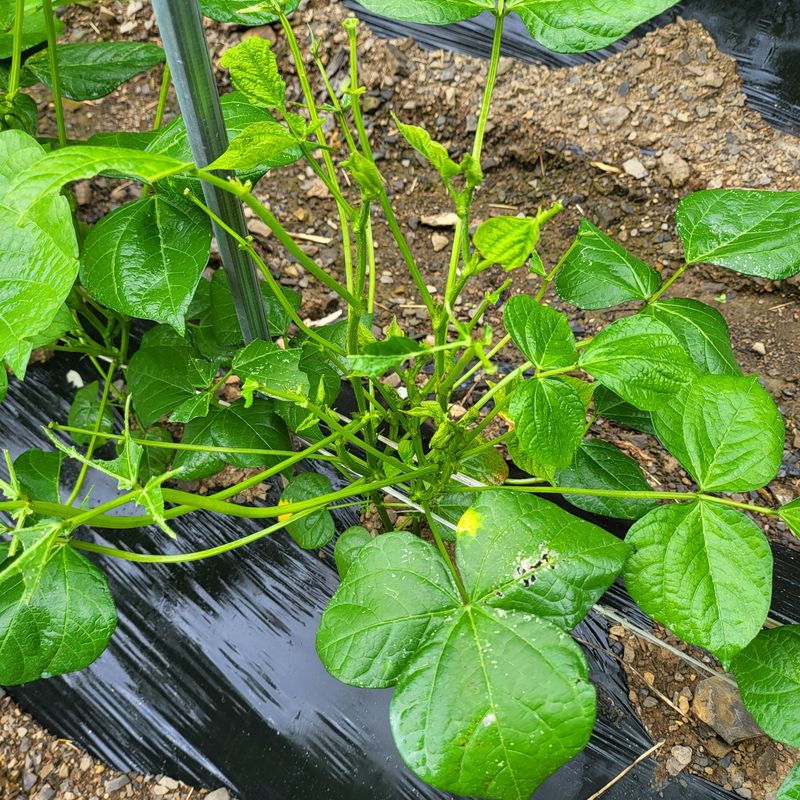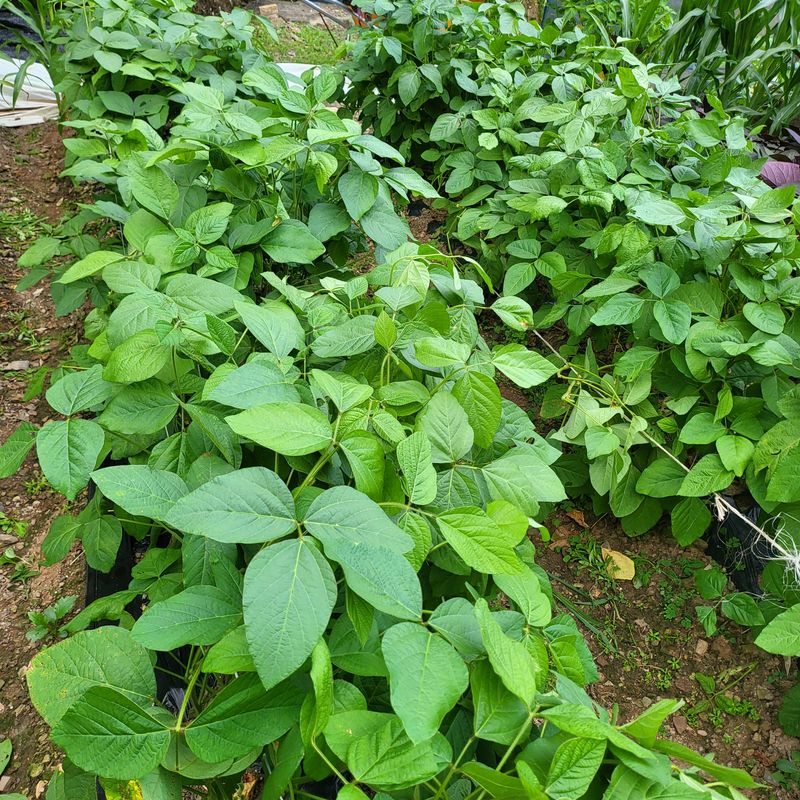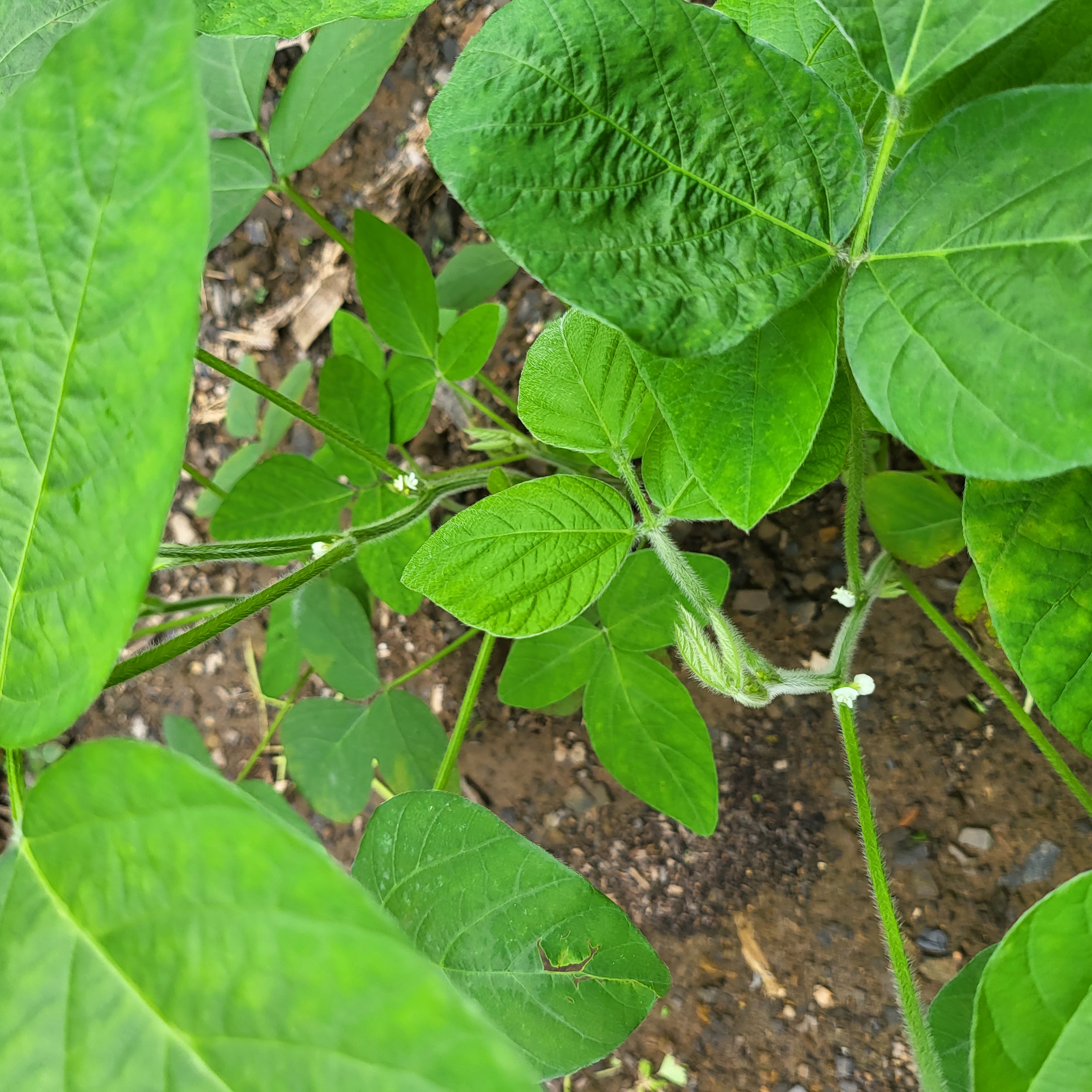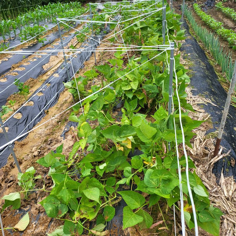 메주콩과 서리태 가지가 많이 뻣어나오도록 머리순을 잘라 주었다. 이미 쓰러진 서리태에 지주를 세우고 줄을 쳤다. 앞으로 쓰러짐방지를 위해 중간중간 끈을 묶어 고정시켜 주었다. 메주콩은 벌써 꽃을 맺었다.