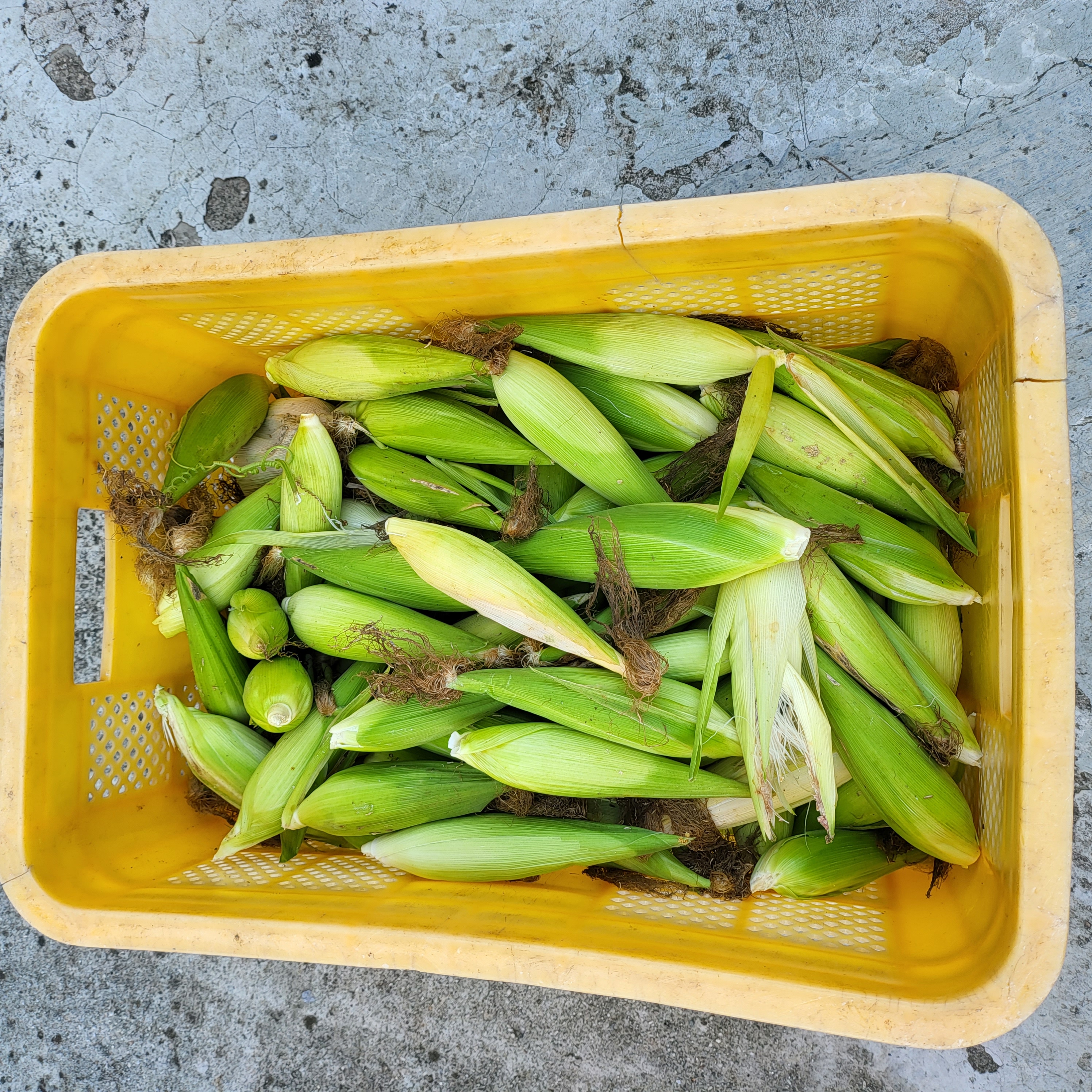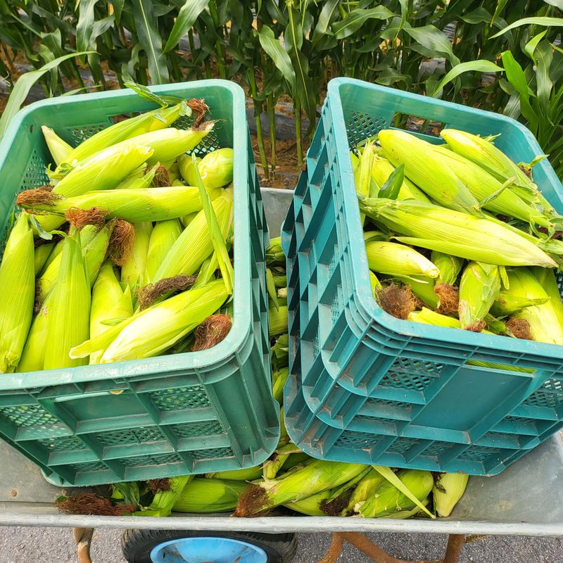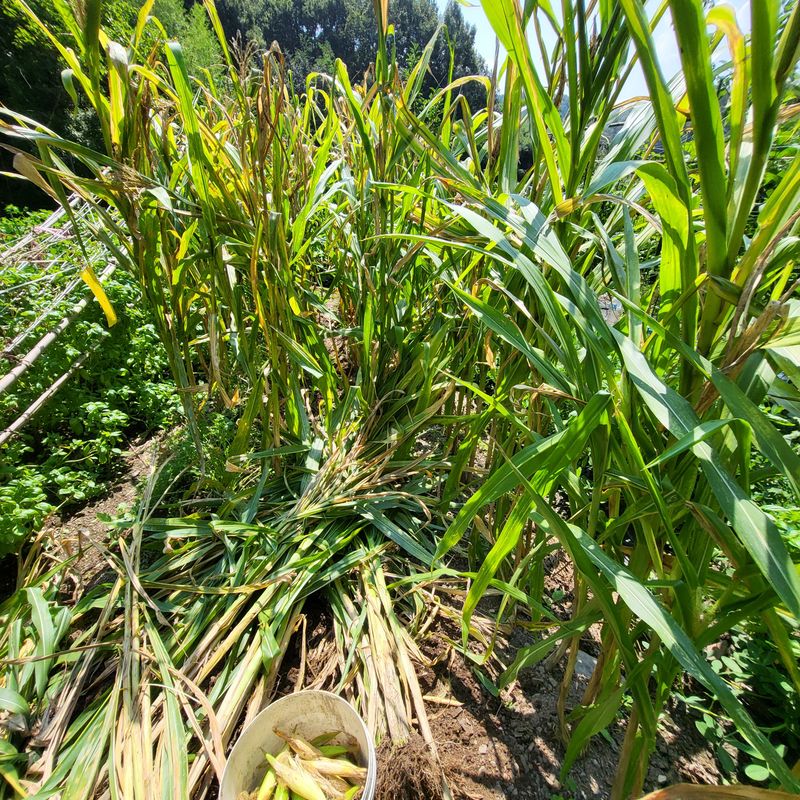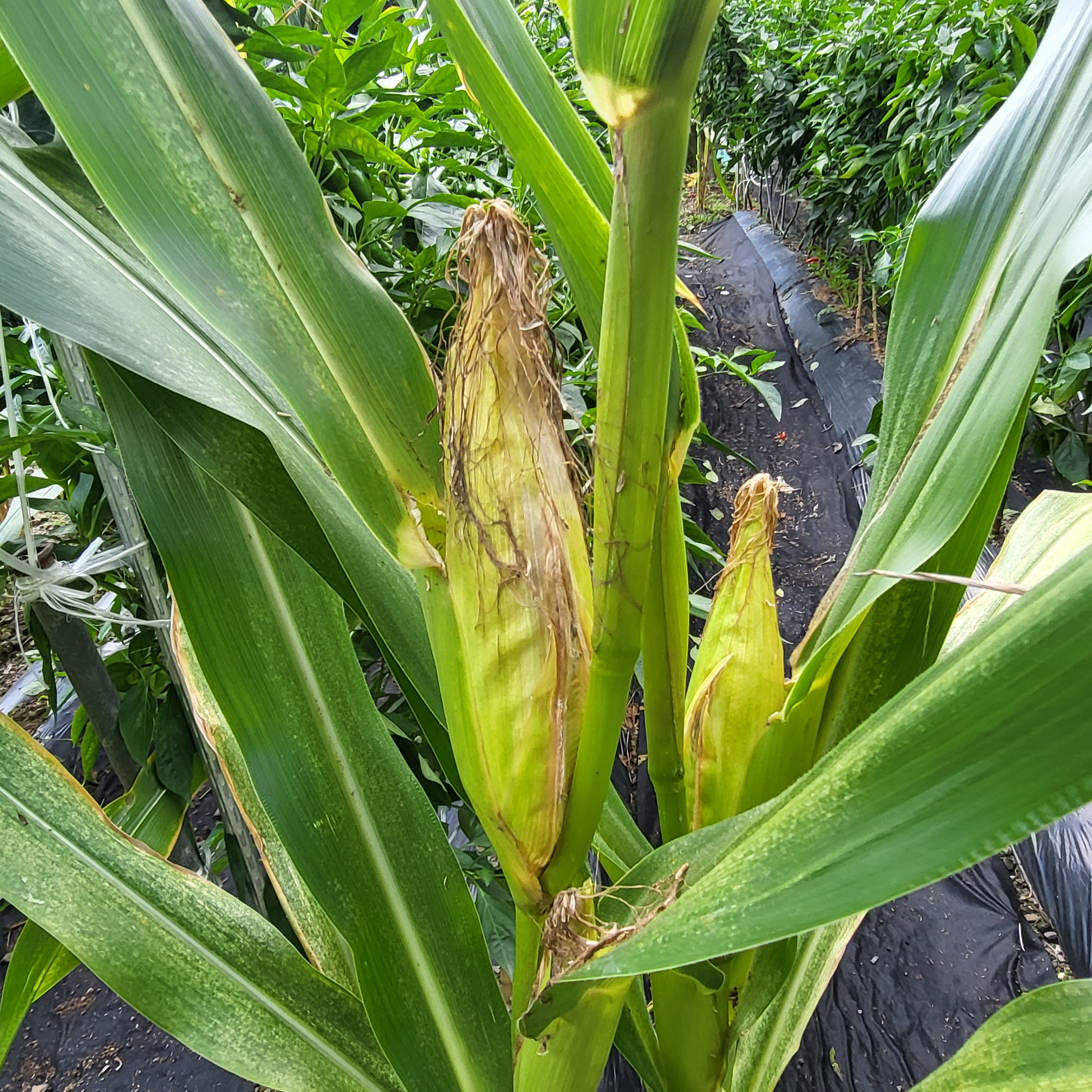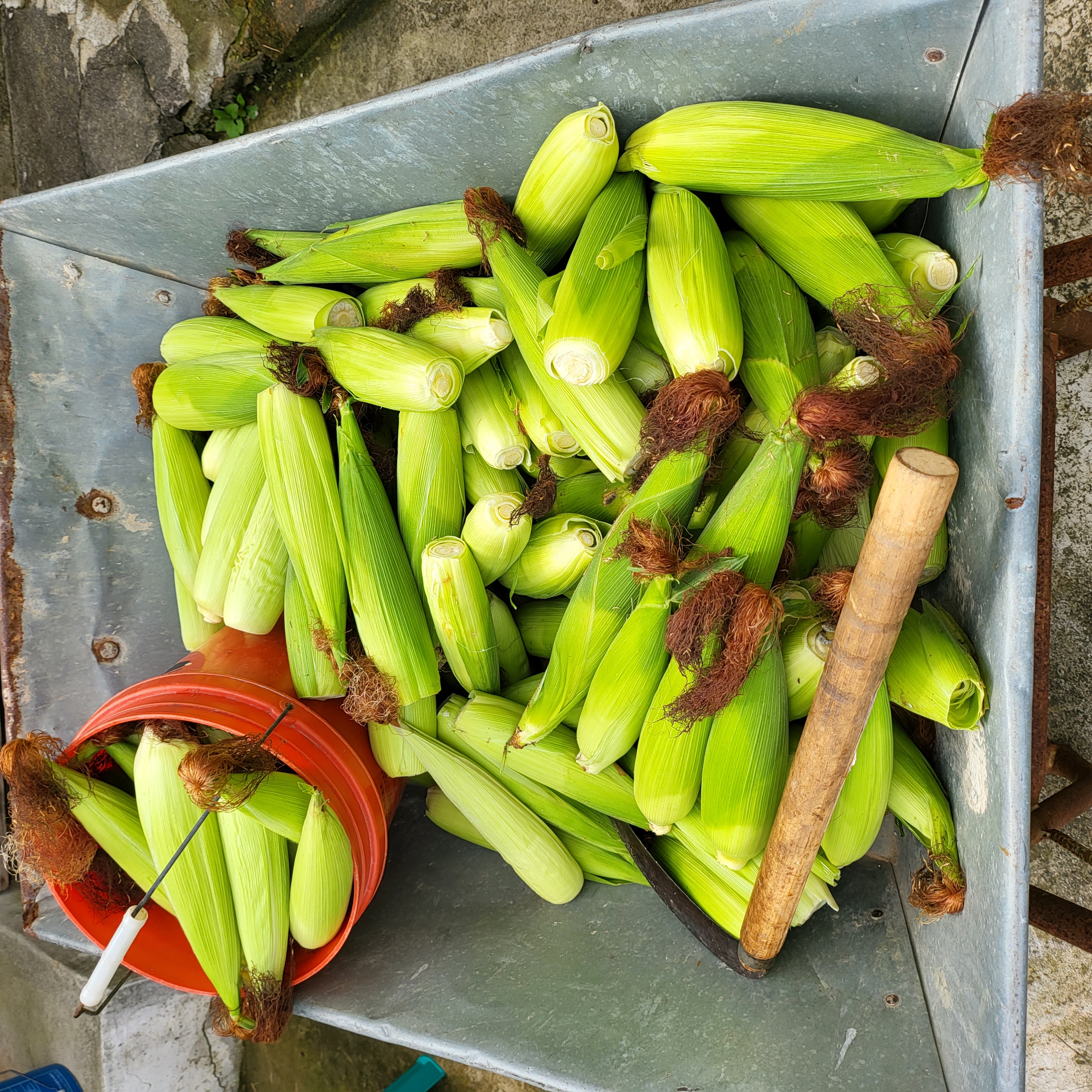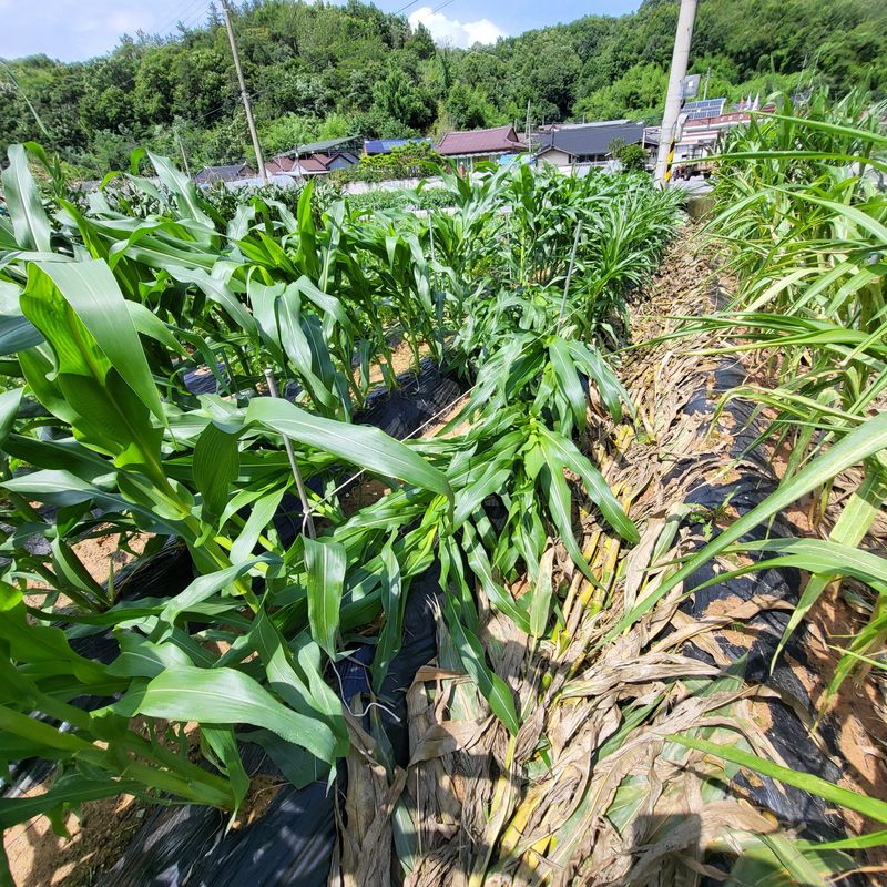 지난 6.8일에 옥수수씨를 포토에 파종하여 고추 고랑 사이 사이에 옮겨 심어 잘자랐다. 1주일전에 10통 정도 미리 따 봤을땐 완성작에 못미쳤는데 이젠 튼실하게 잘 여물었다.