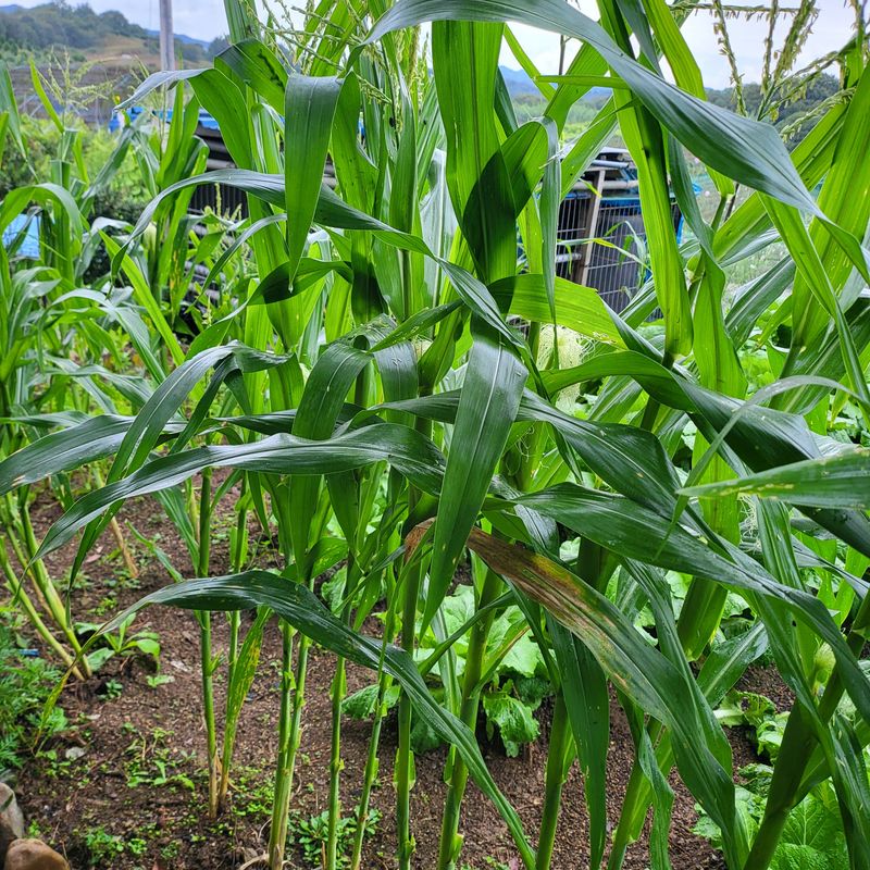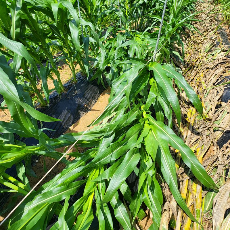 <옥수수 4차분 시험 관리> 지난 7.30일에 시험 삼아 씨로 뿌린 9월 옥수수가 의외로 잘 자라고 있다. 이때쯤이면 무,배추 파종으로 옥수수는 엄두도 내지 못했지만 9월 말까지 따뜻한 날씨로 잘자라 수술과 수염이 한창이다. 비바람 쓰러짐방지, 잡초제거 서리 내리기 전...