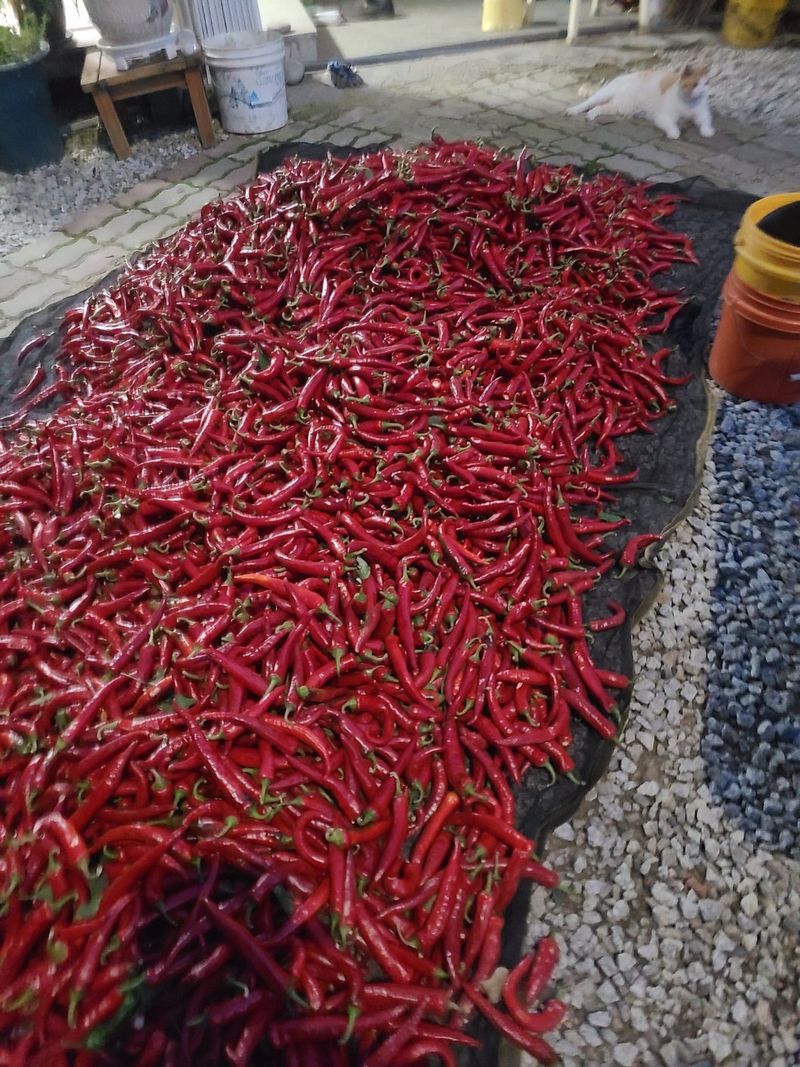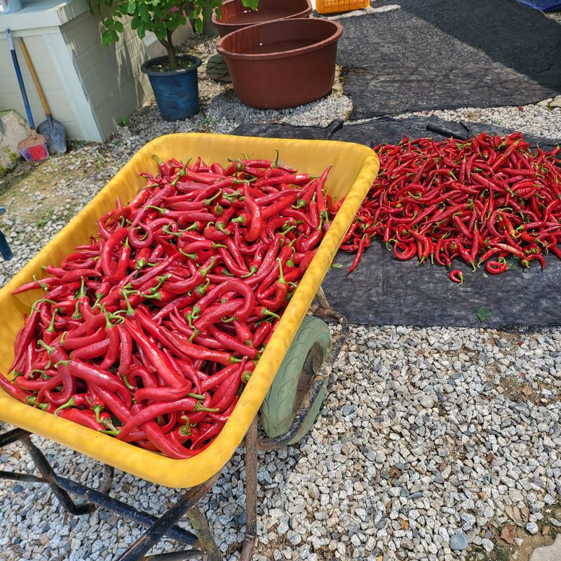 <홍고추 3차 수확> 새벽에 나가 홍🌶 고추를 따기 시작했다. 전년도 농사일지를 보니 8.8일에 땄기에 이틀 빠른 비슷한 날에 정확히 수확한 듯 하다. 수확량은 전년도 보다 훨씬 많이 딴듯하다. 우리가족 자급자족하고자 농사를 짓고 있지만 폭염경보 속에 힘든 시간이었...