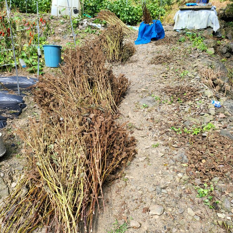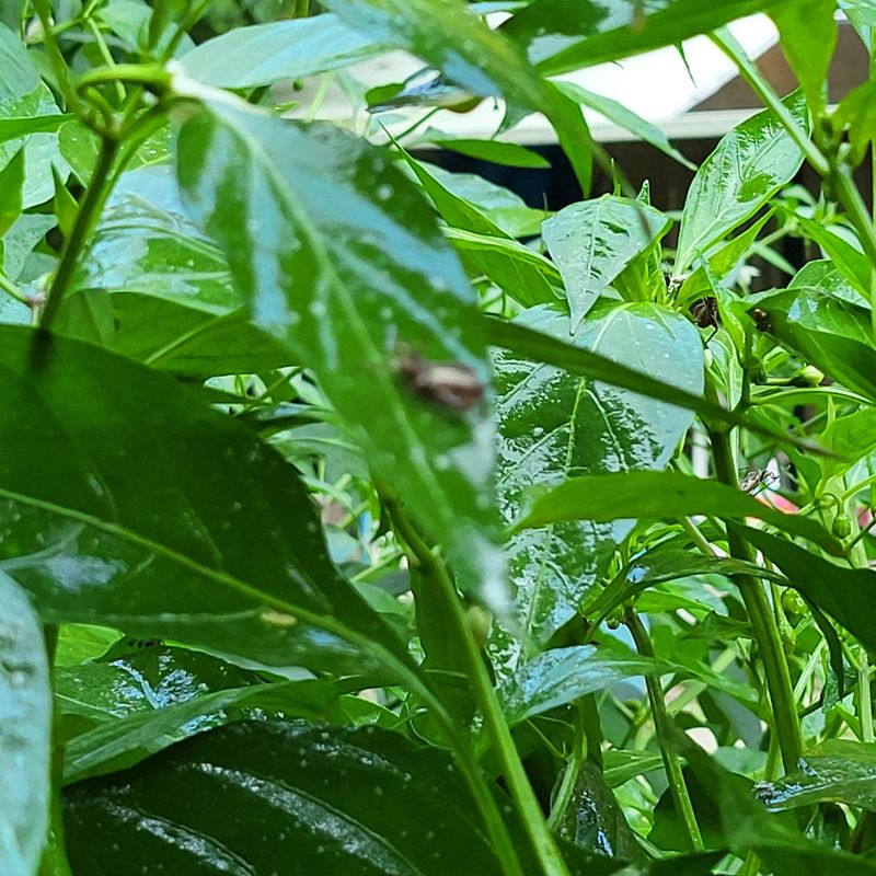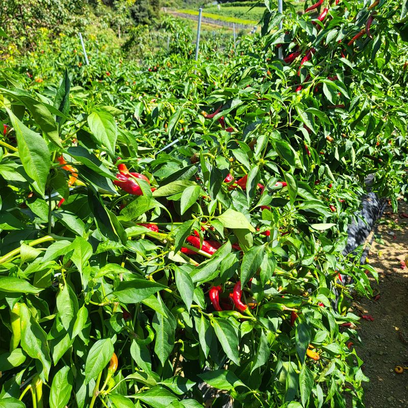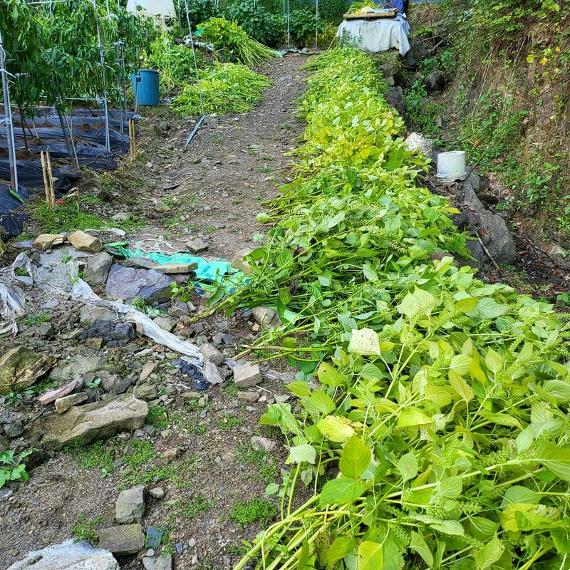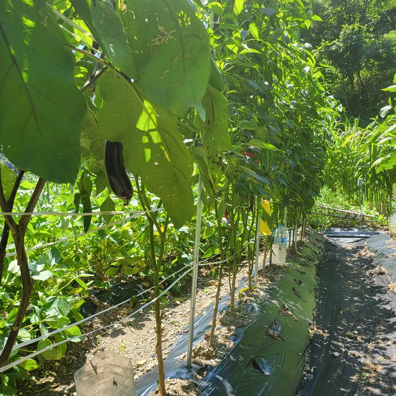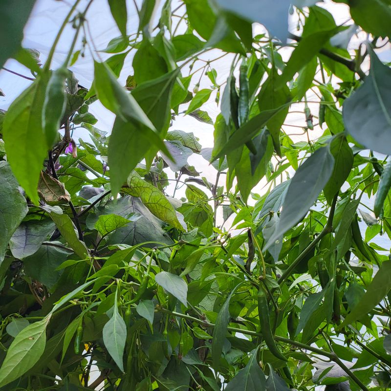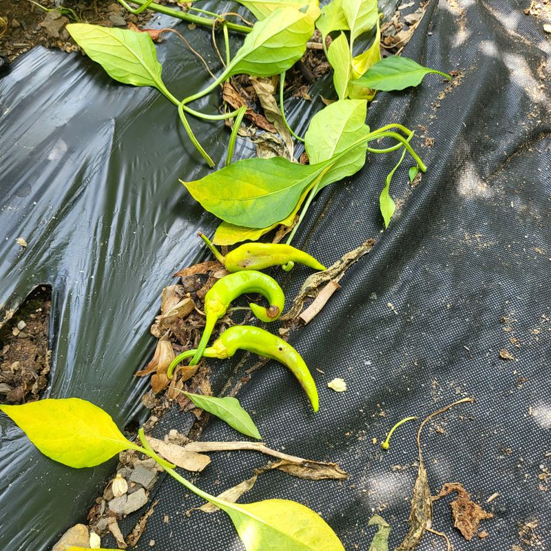 <홍고추 4차 수확> 🌶 홍고추 새벽 일찍 4차 수확하고, 유인줄치기 텃밭에 심은 고추는 너무 웃자라 고추는 열리지 않고 키가 내키를 넘어섰다. 아마도 주변이 산속이고 주변에 큰나무가 많은 탓인듯 하다.