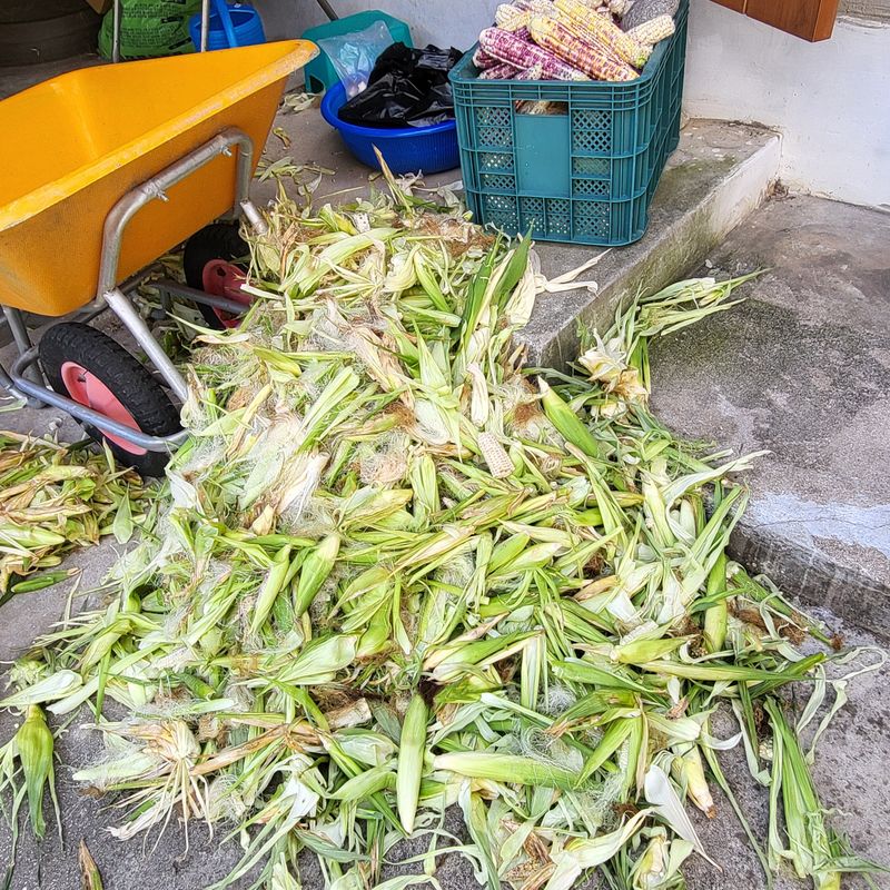 <대학찰옥수수 수확> 2024.7.14(일)옥수수 수확 껍질까기 4.28일 대학 찰옥수수 모종 128포기 구입 심어 7.14일 🌽 옥수수 수확 다듬기 ※ 아쉬운점:밀착식으로 심어 주당 1개씩 열러 수확량이 적다. 포기당 간격을 30~40센치로 늘려 심어 2...