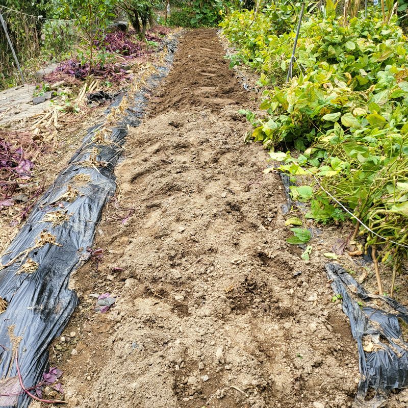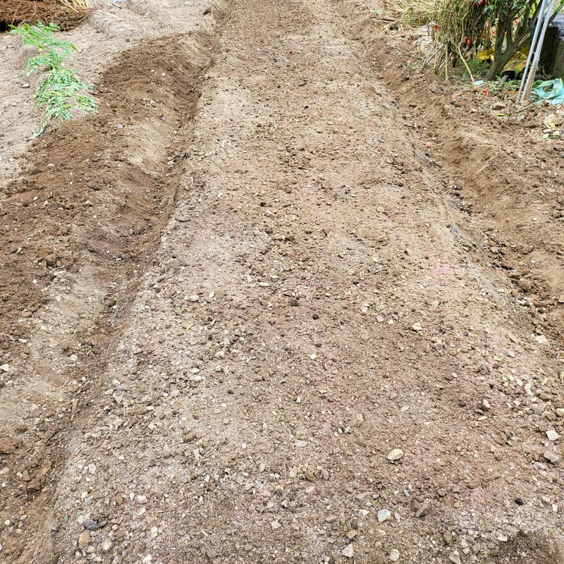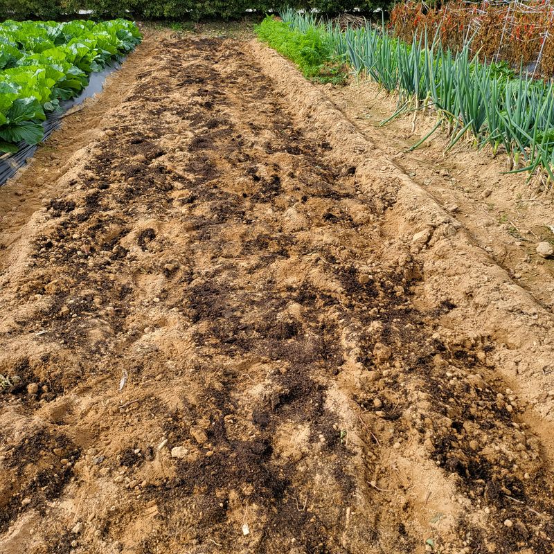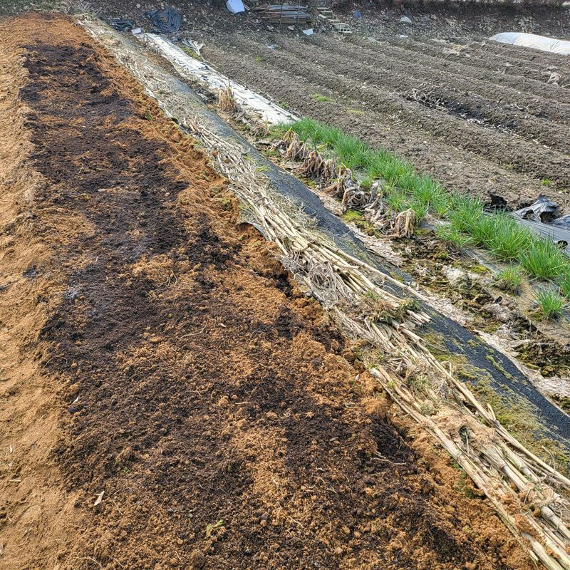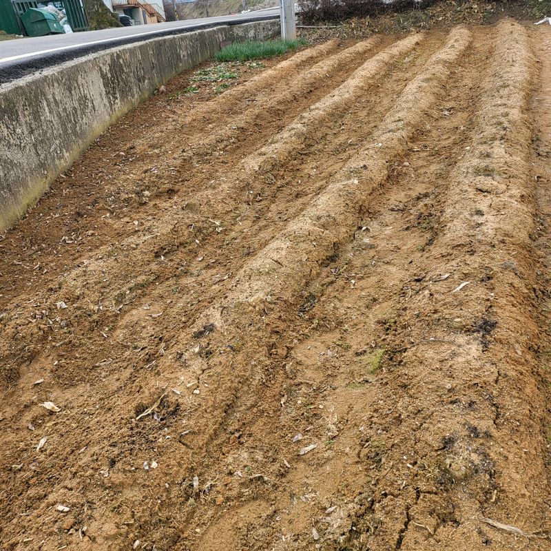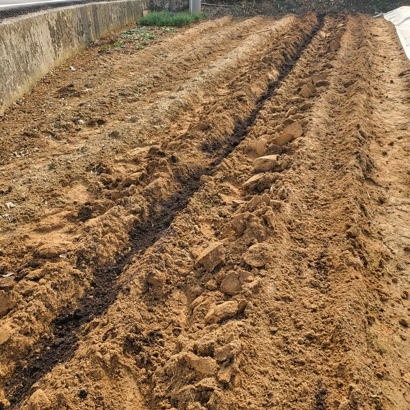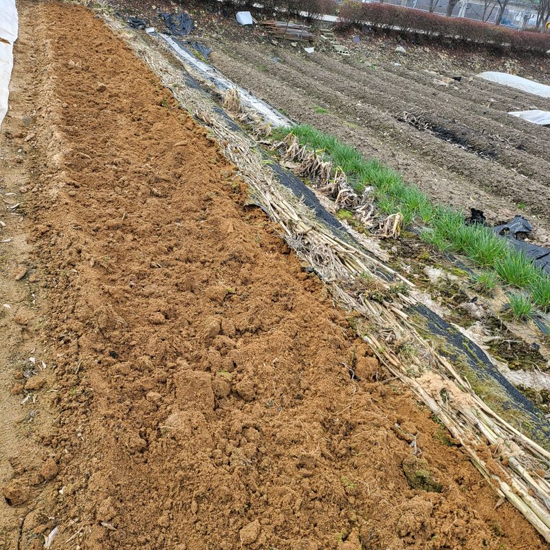 ○감자밭 파고 퇴비뿌리기 ♤전년도 배추고랑 마른배추잎 모두 긁어내고, 씨감자를 심기 위한 2줄 두럭파고 퇴비 뿌린후 흙으로 살짝 덮기 ♤향후 비료 뿌린 후 두럭 만들고 고자리약, 비닐멀칭, 파종 예정