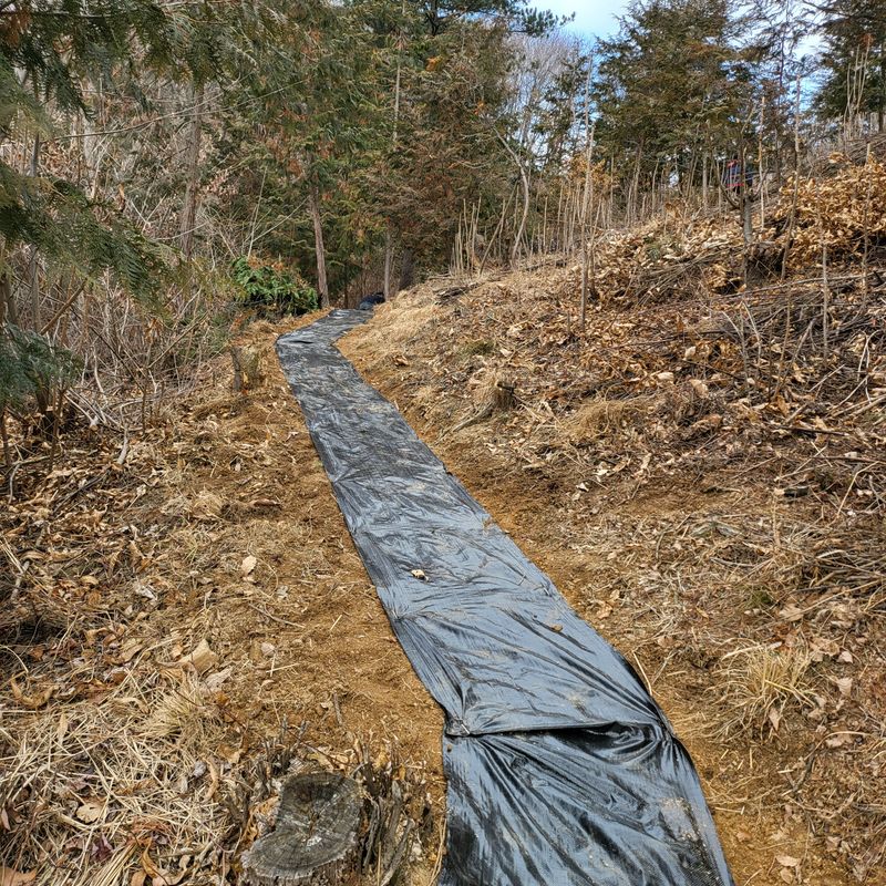 서당골 산에 편백나무 및 참두릅나무 주변 잡목치기 할아버지 산소 가는 길 겸 참두릅 수확을 위한 오솔길 부직포깔기