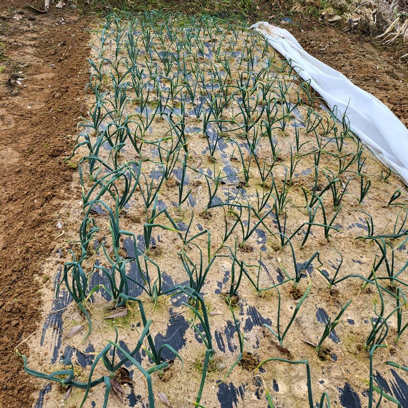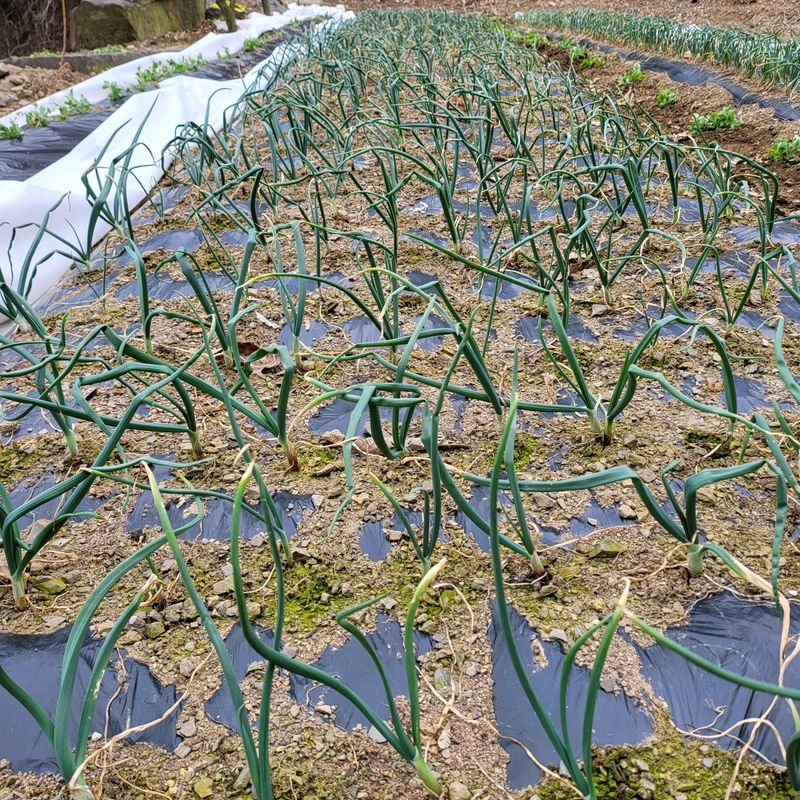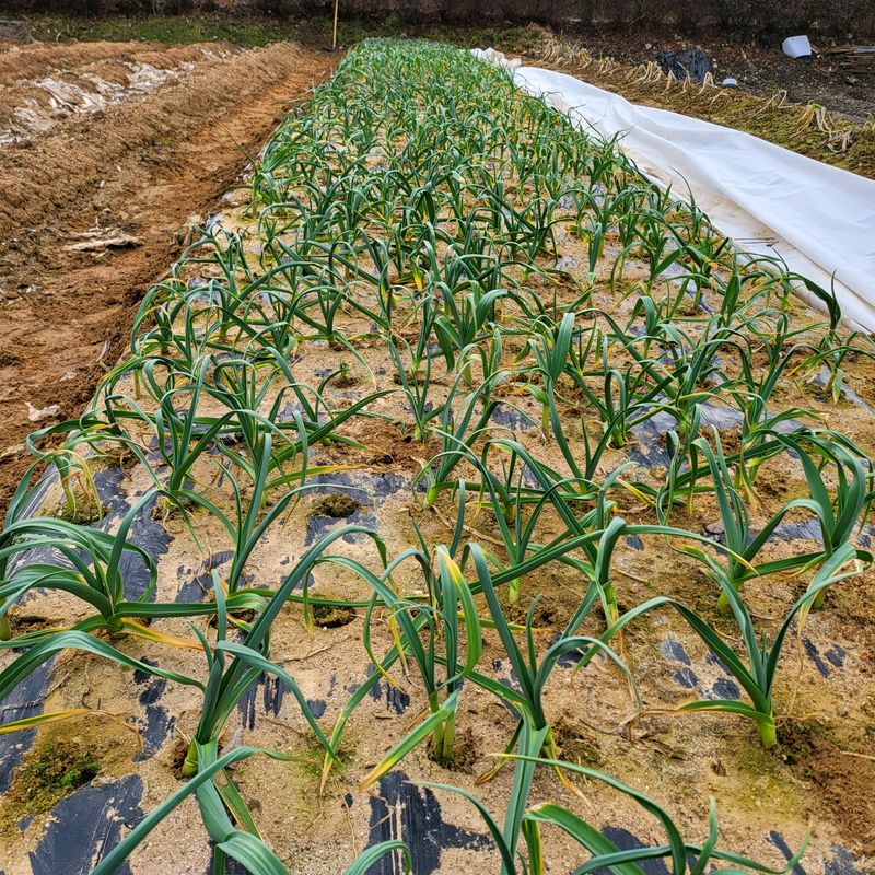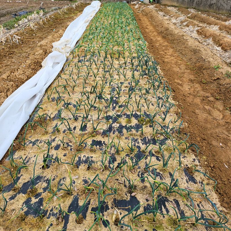 ○마늘 부직포 완전히 벗기고 방제 겨울내 따뜻하게 덮고 있던 부직포를 시원하게 벗겨주었다. 2차 고자리파리약, 무름병 방제를 위하여 살포