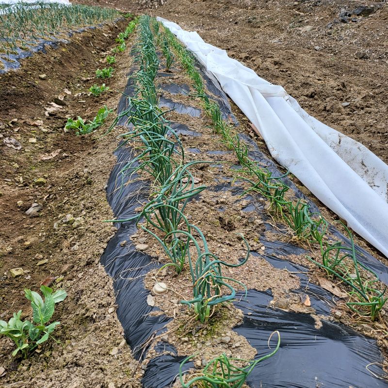 ○양파 부직포 완전히 벗기고 방제 겨울내 따뜻하게 덮고 있던 부직포를 시원하게 벗겨주었다. 2차 고자리파리약, 무름병 방제를 위하여 살포