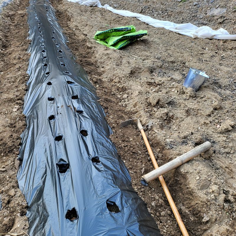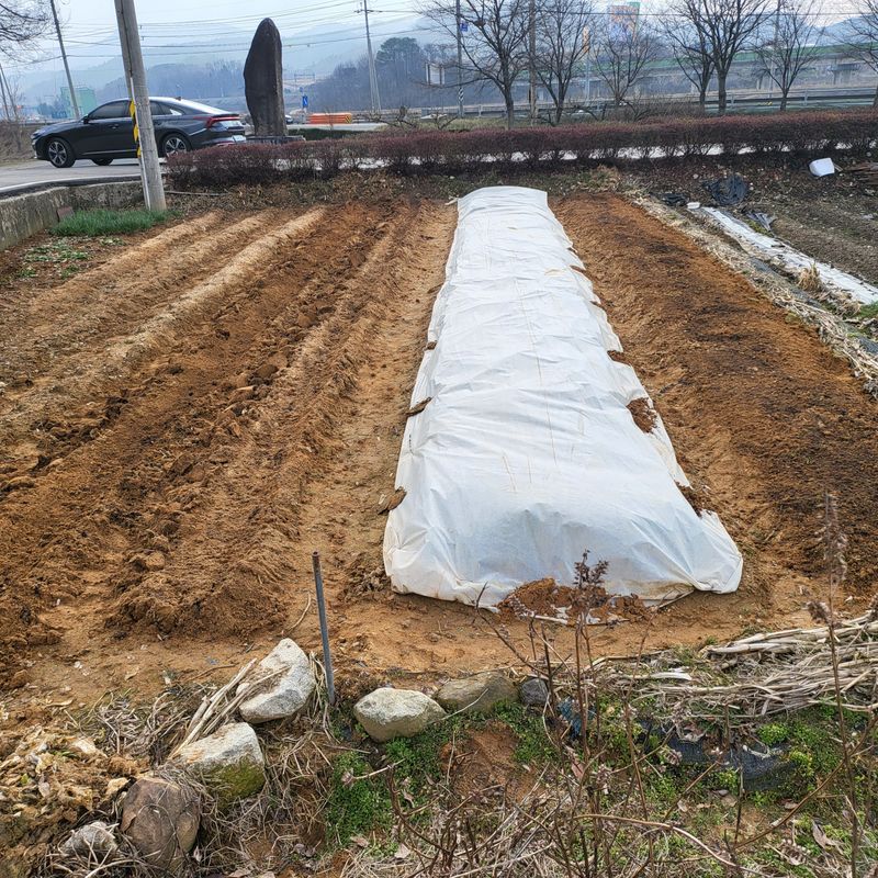 감자 파종을 위하여 지난주 3.3일에 뿌린 퇴비위에 복합비료 뿌리고 고랑 만들어 토양살충제 뿌린후 비닐멀칭하고, 구멍뚫어 소독해둔 감자 3키로 심기(1.27팜모닝 왕산종묘 씨감자 예약 2.27도착) 2줄중 1.5줄 심고, 부족분은 전년도 수확분 소독하여 채워 심...