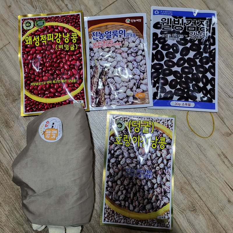 <강낭콩 1차 수확> 올 봄에 2.20일 팜모닝에서 구매하여 3.27일에 심은 검정강낭콩, 일반얼룩강낭콩, 적강낭콩(비덩굴 3종)을 파종 하고, 호랑이강낭콩(덩굴1종)은 추후 심기로 하여 가뭄 끝에 이제야 싹을 틔우고 줄기가 올라오고 있다. 비덩굴성 3종을 심었지...