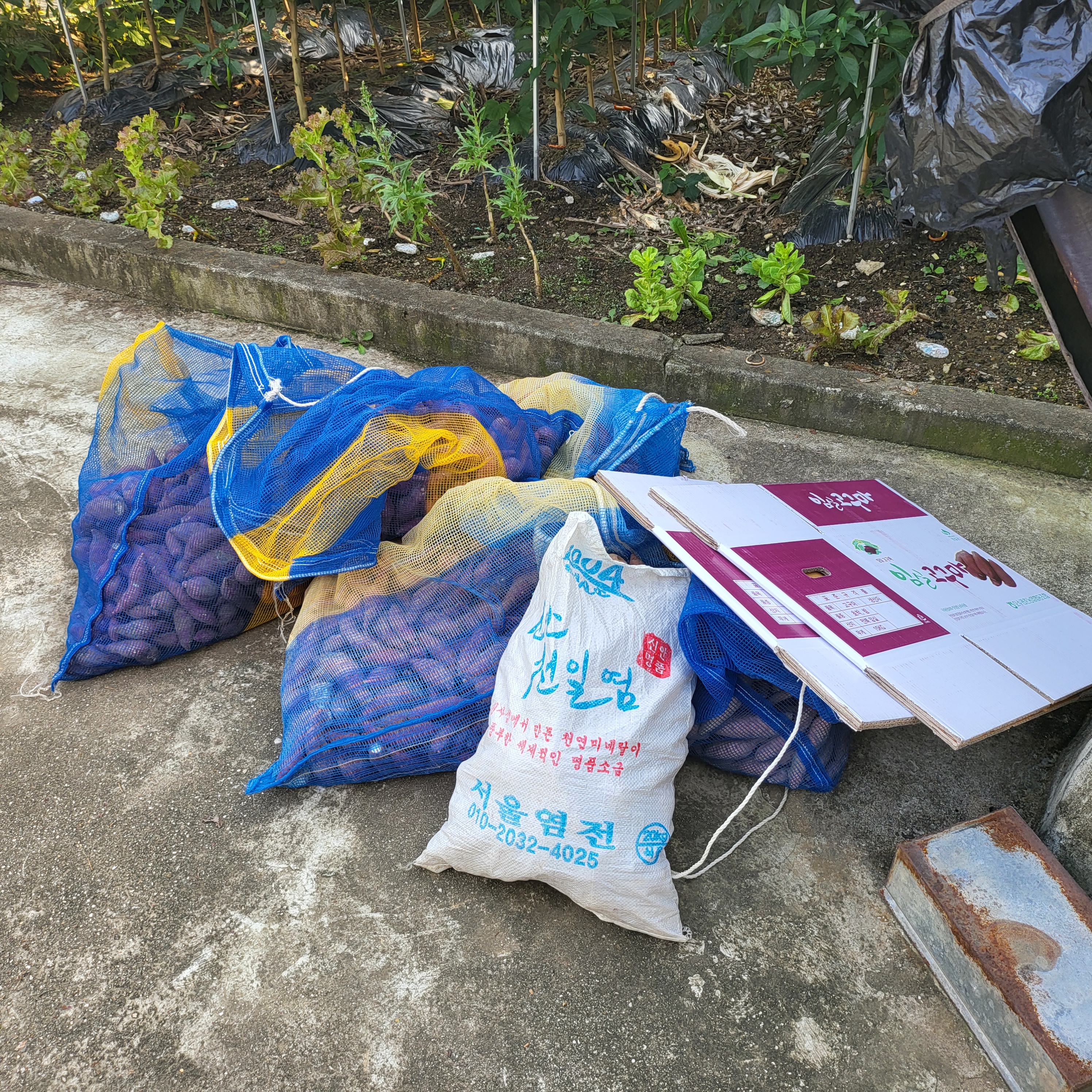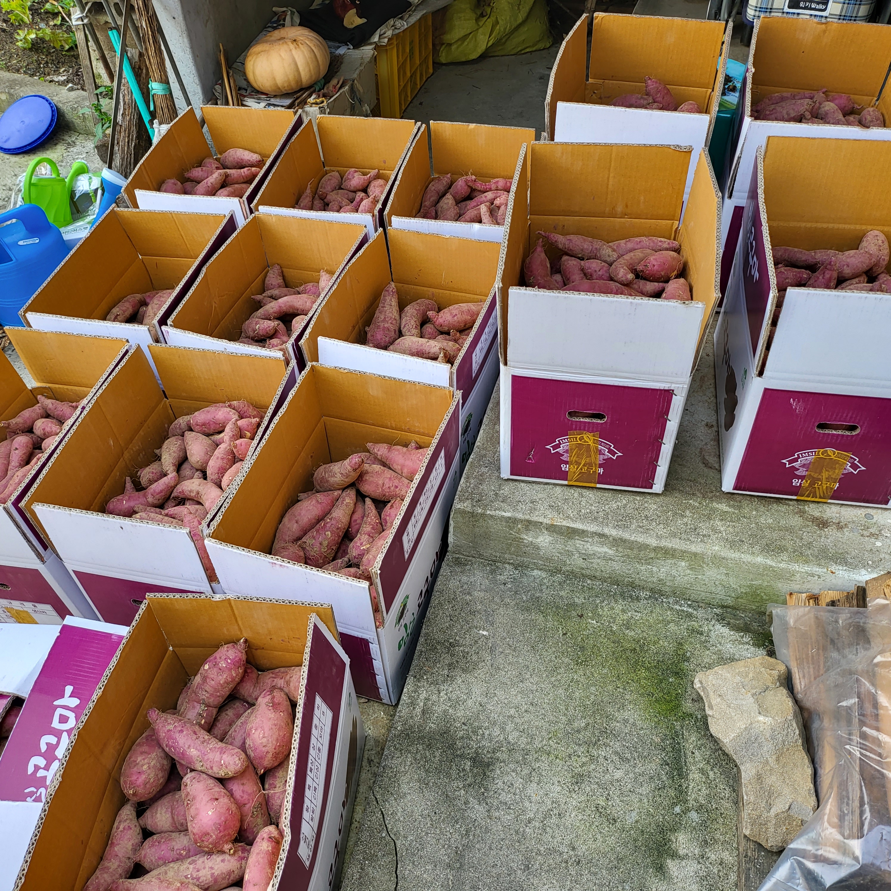 <밤고구마 수확> 누나네 밤고구마 수확, 실이 안베기고 알이 꽉차 잘들었고 맛이 일품이다.(미리 쩌먹음) 🍠 🍠 🍠 ♤팜모닝 2024.2.14주문예약 -누나:꿀 30단, 밤 5단 -본인:꿀 10단, 밤 5단 ♤2024.5.11모종도착 ♤2024.5.12모종심기 ...