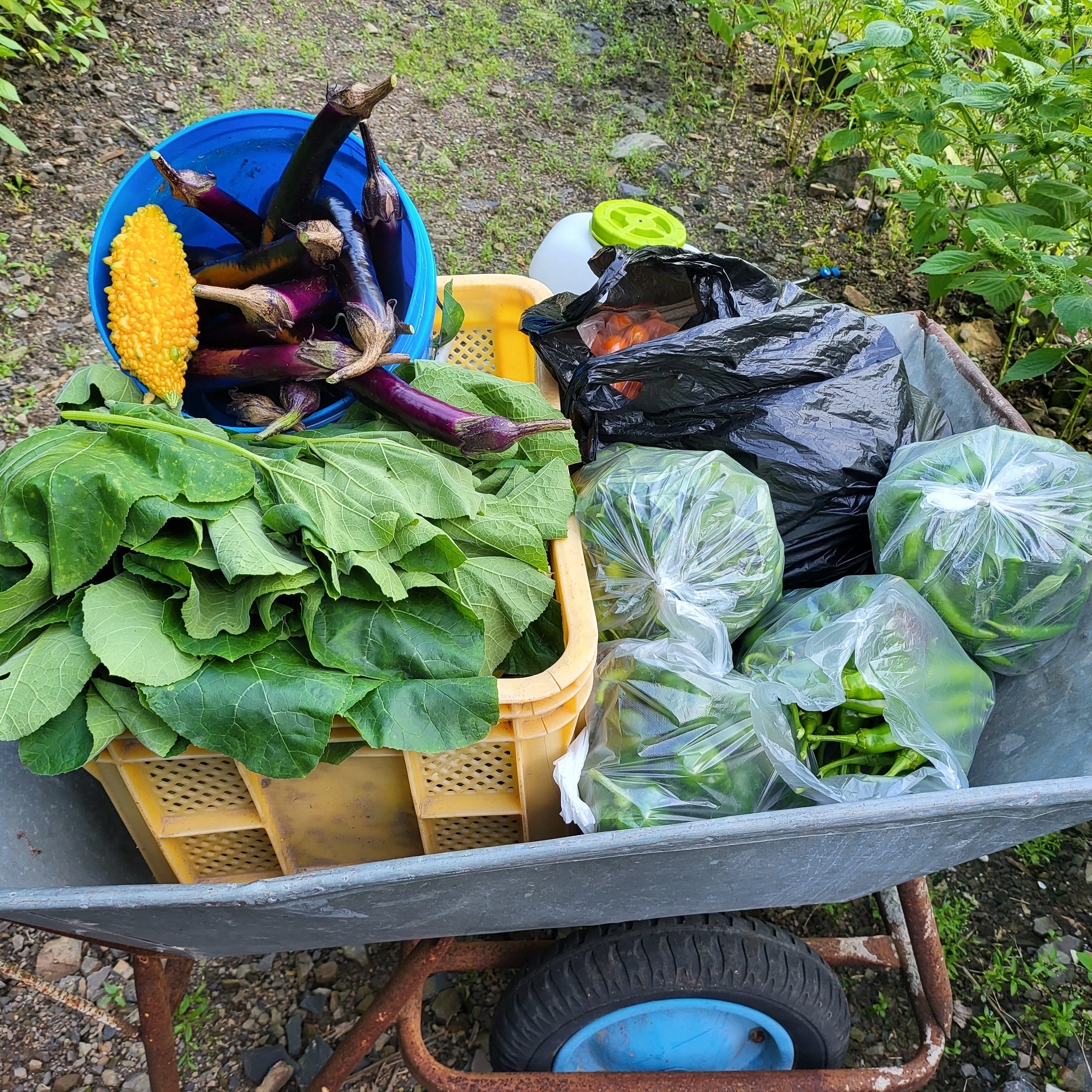 옥수수 모두 수확 오랜 장마와 비ㆍ바람에 일부가 쓰러진 가운데, 비를 맞으며 잘 익은 옥수수를 수확 했다. 2통씩 예상했는데 1그루당 1개씩만 달려 아쉬움이 컸다.(하지만 7남매가 40개씩은 나눠 먹을 수 있어 다행이다.) 가을 옥수수로 100주정도 심었으니 이 또한...