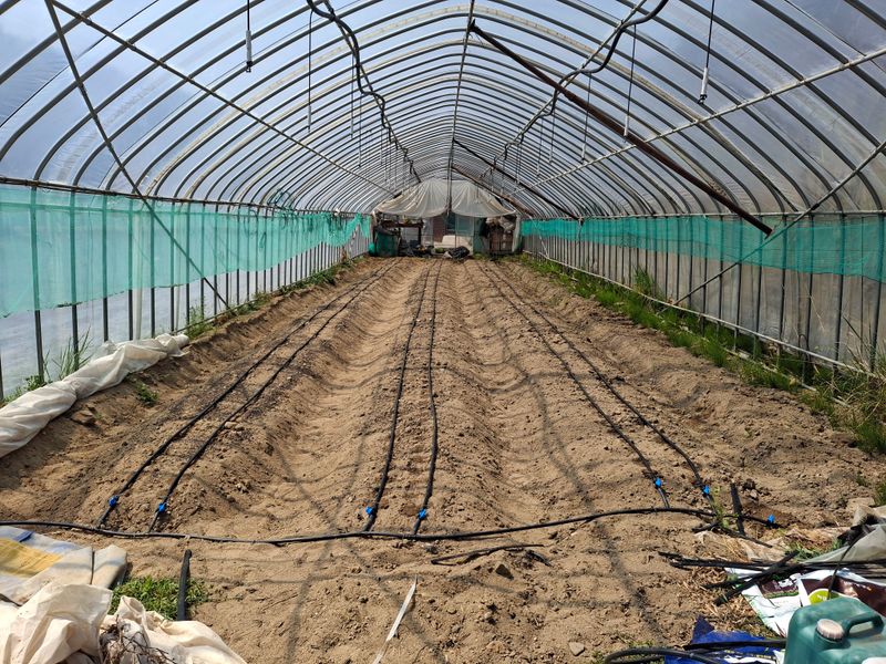 말곡리358-3번지 참깨(영웅)수확 및 하우스에서 건조 중 참깨 수확한 자리에 쪽파 파종: 진행중