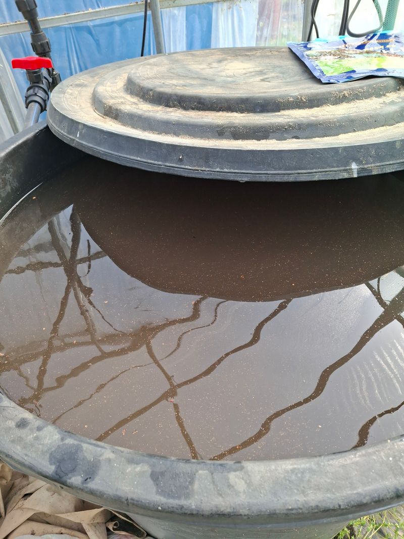 감자전분미생물 배양작업 배양조건 : 지하수500리터, 감자전분 650g, 바닷물20리터, 부엽토1.5kg 당밀450g 상온실시