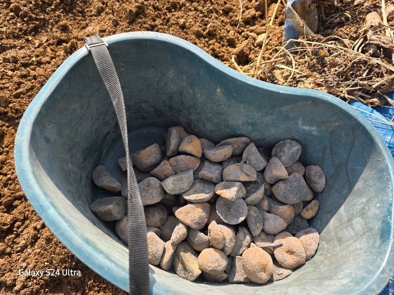 감자밭일주일전준비 감자쪼개기및준비한재에소독하여 3일간 건조후 직파함
