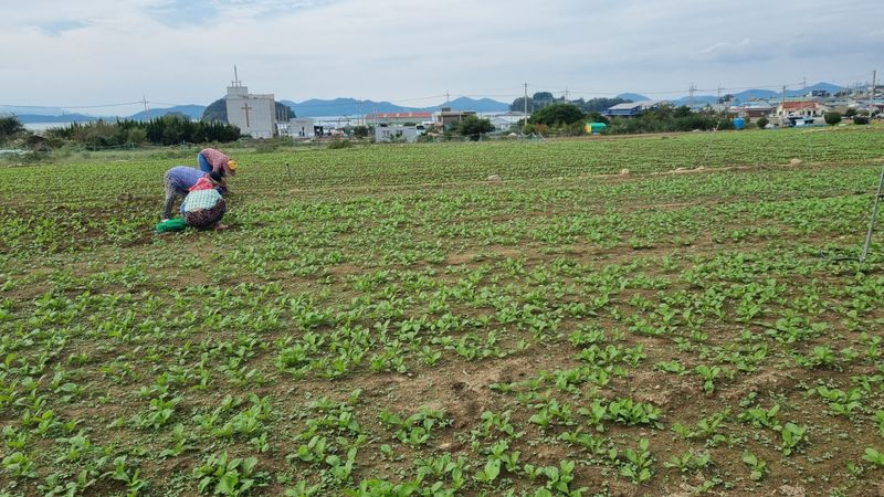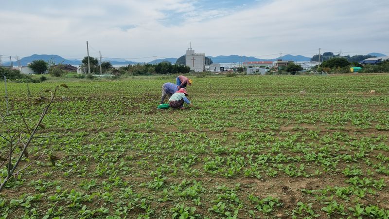 저온창고 갓밭 김매기 놉2명 고용하여 엄마 나 총 네명 김매기하여 육백평중 1/3 정도 진행