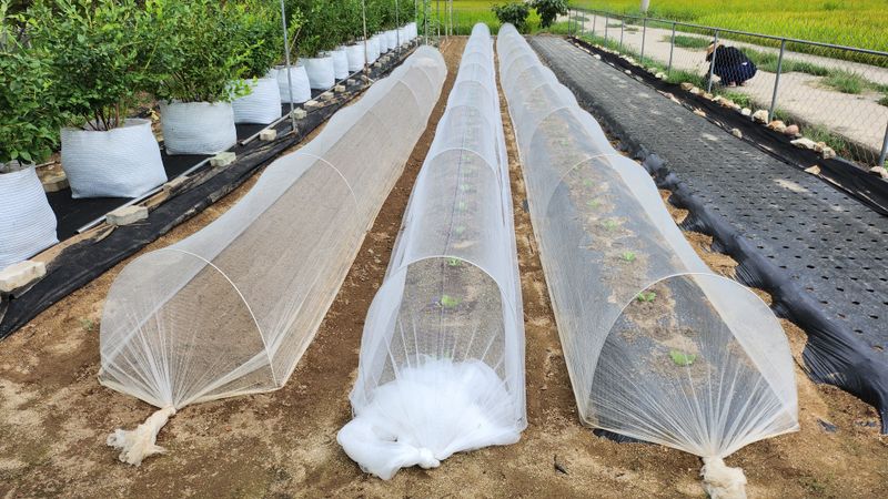 ■살충제 살포 *배추, 양배추, 무밭, 블루베리 *캡틴+G-1 *배추좀나방, 배추순나방, 벼룩잎벌레