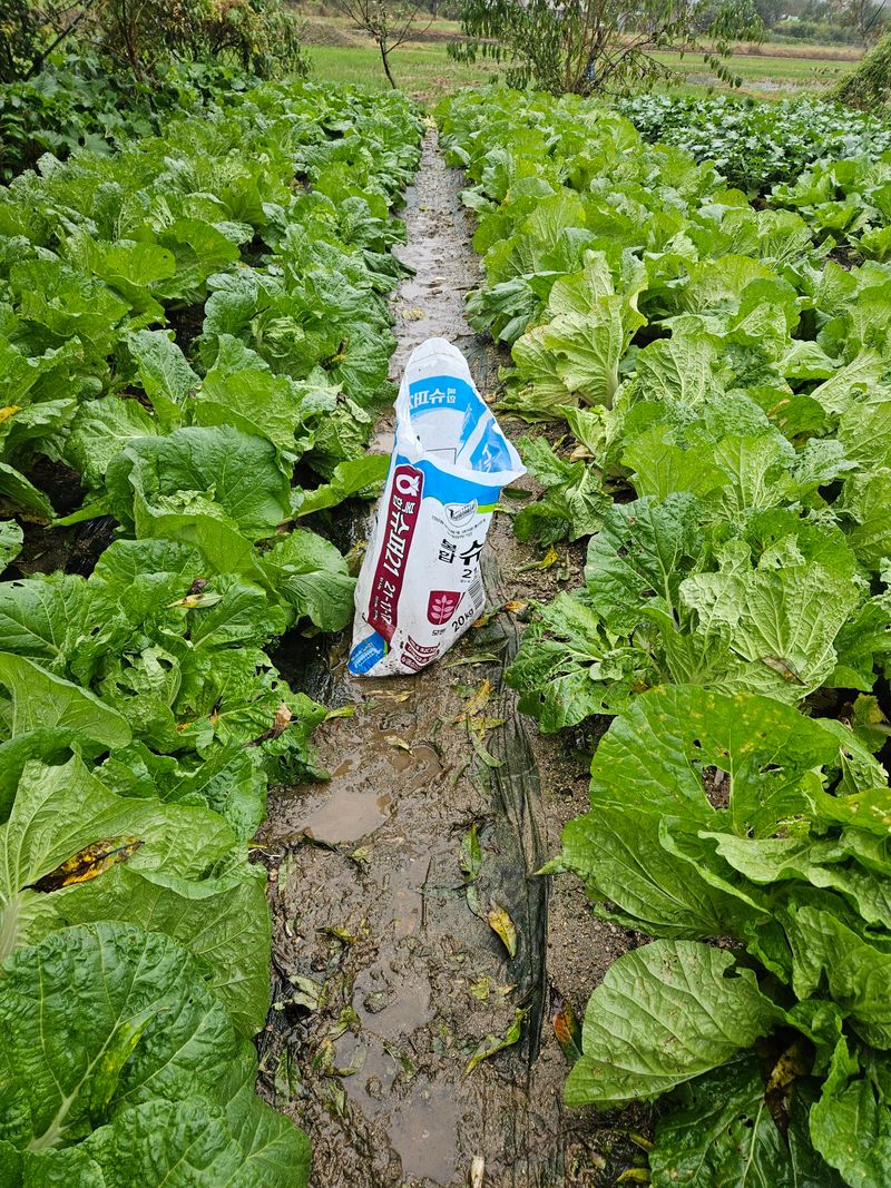 1) 김장밭 칼슘제 옆면시비 2) 김장배추 밑단곁가지 제거작업