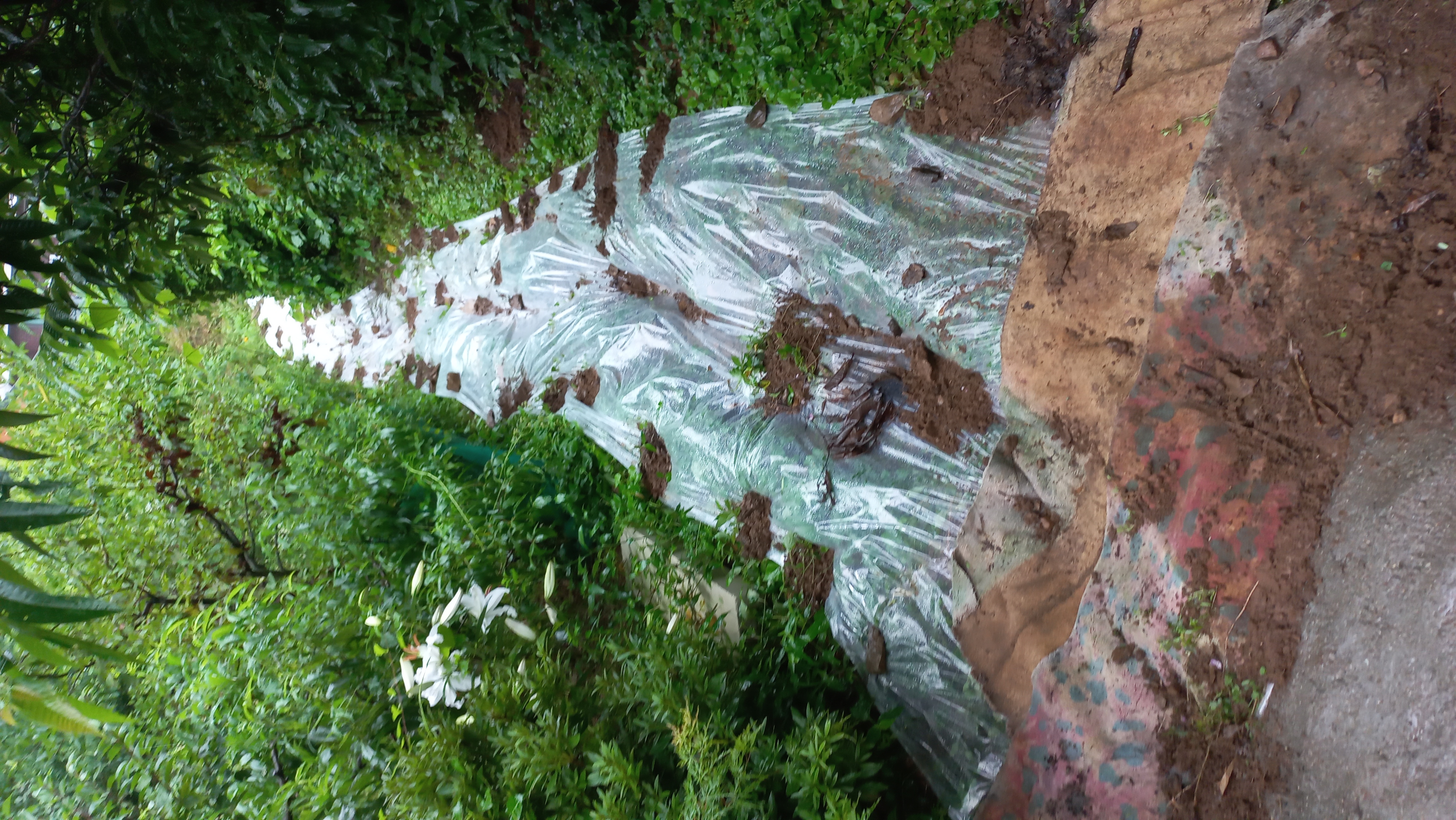 비닐로 토사유실 방지작업 폭우로인한 밭 뚝길 비닐씌우기 작업