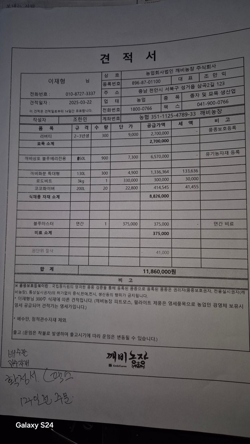 농자재 가지고옴 오후에는 파쇄기 신청 블루베리 검사비36만원 보냄 타이어교체 560000원 빽미러교체