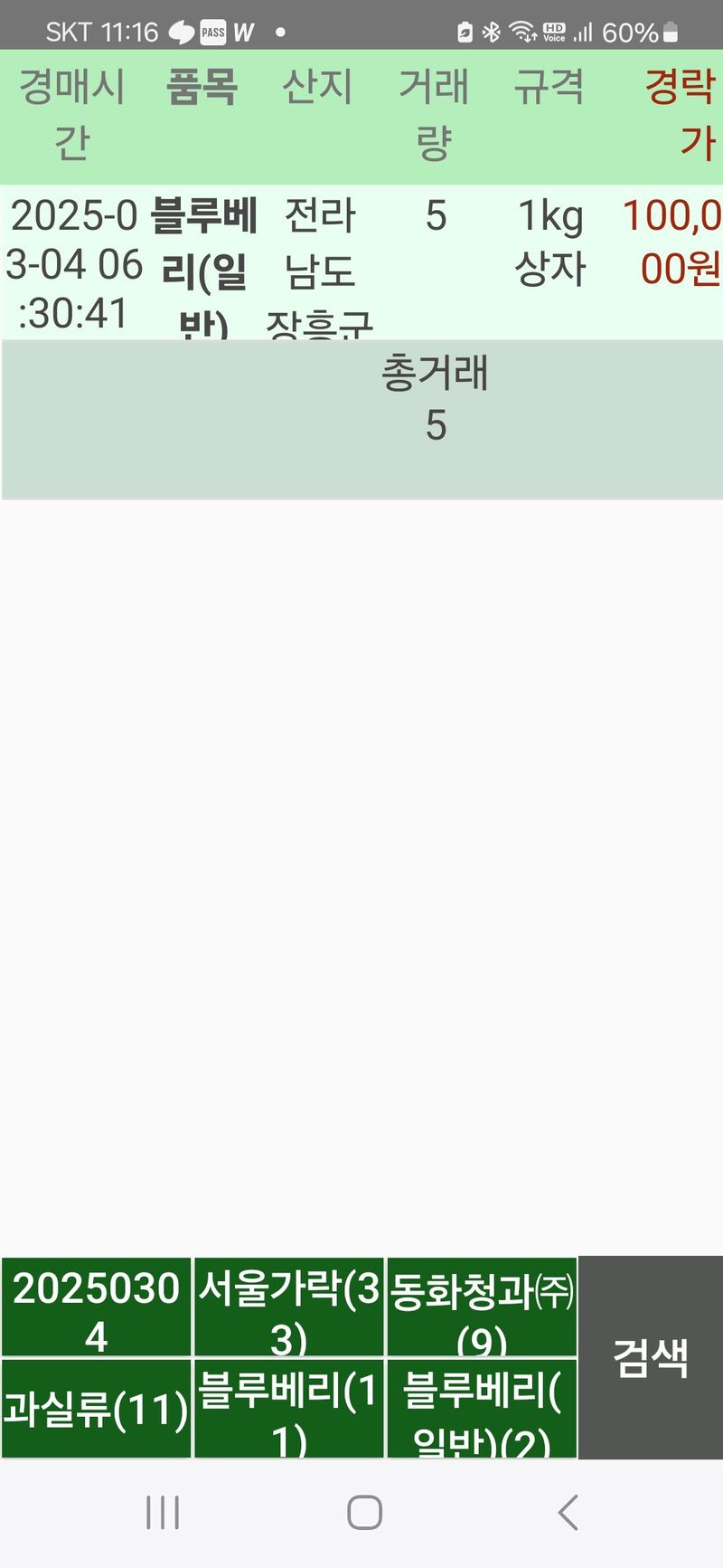 가락시장 블루베리 경매가 하락 150.000 130000 130000 110000 청소 8번지 벌1통빼서 1번지 옮김