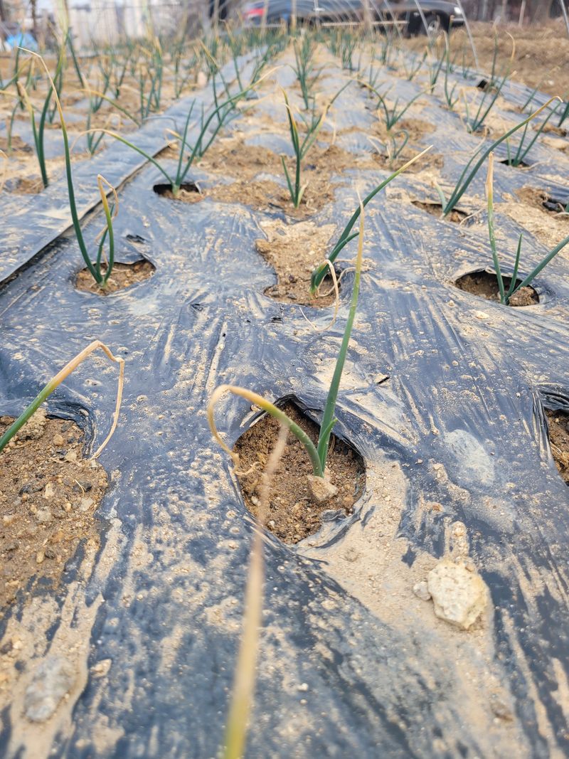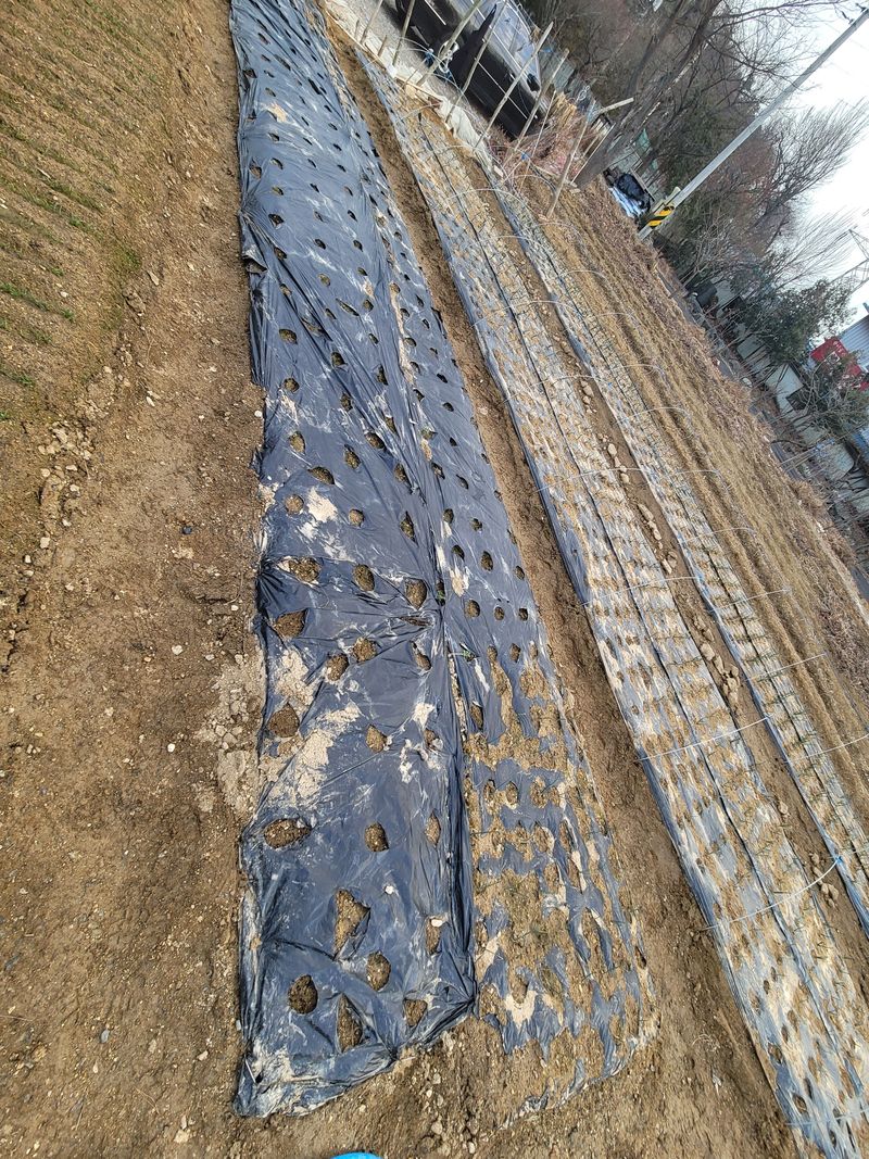 봄양파모종 추가정식할 비닐멀칭 천공 500개 확보 및 양파모종 침지