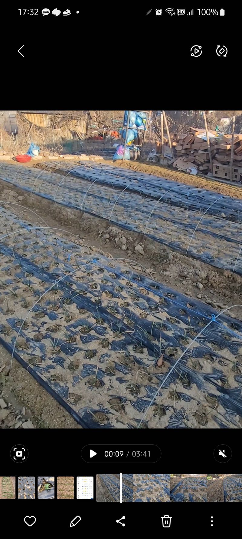 양파밭에 씌워준 터널과 시금치밭 완두콩밭 부직포 걷어주고 물 흠뻑 뿌려줌.