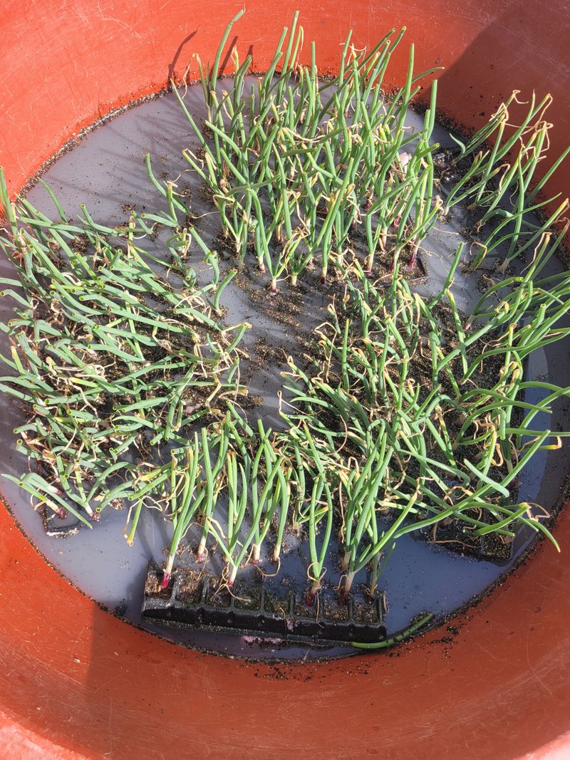 봄양파를 양파밭 빈자리에 정식할려고 비닐멀칭을 구멍을내고 양파모종을 발근왕+스미치온+베노람 섞은물에 침지했슴.