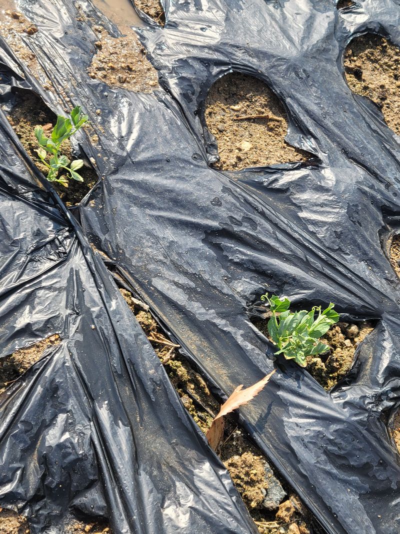 3월10일에 완두콩하고 강낭콩을 파종했는데 오늘 부직포를 들춰봤더니 완두콩만 보이네요. 새가 쪼아먹을까봐 부직포를 덮어줬어요.