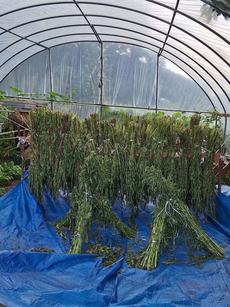 참께 묶어 하우스건조 하기(꺼꾸로 세움)