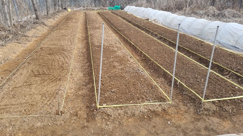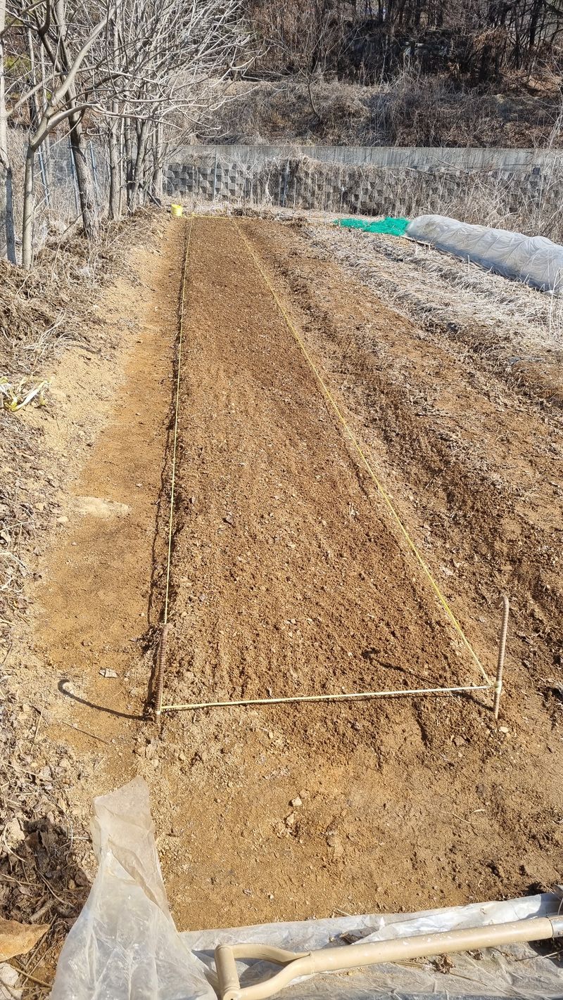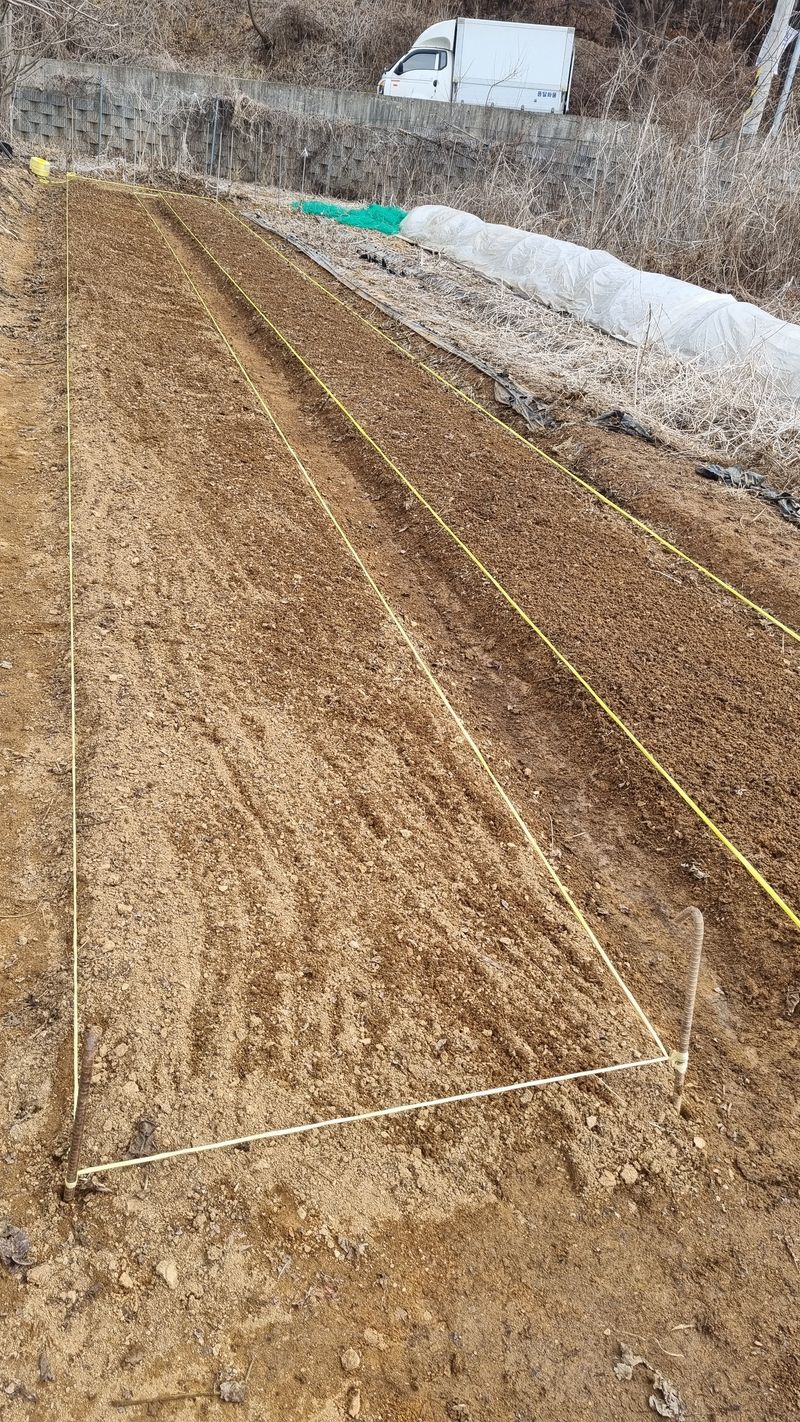밭고랑 조성 1.2mX20.0/5고랑 1.5mX10.0m/4고랑 1.2mX10.0m/14고랑 등 총23고랑중 1고랑 조성