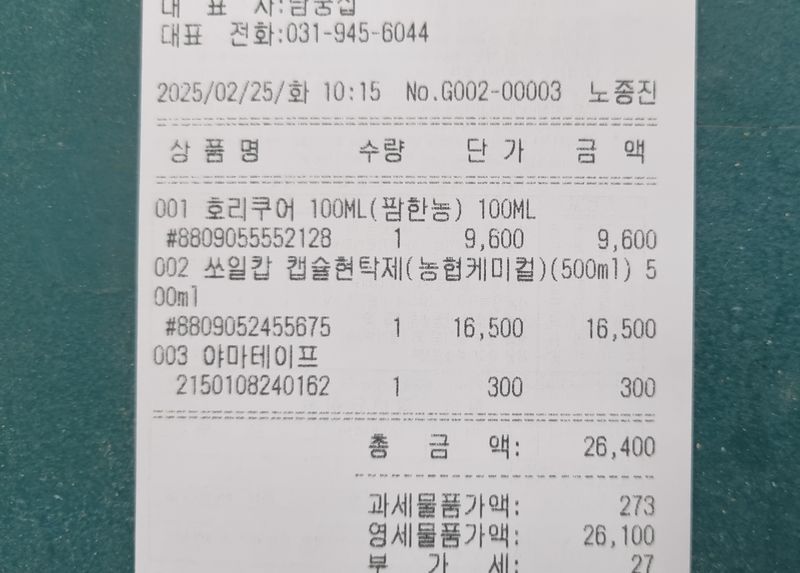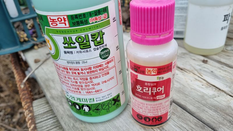 살충제 50ml 호리쿠어 구입 9600원이군요. 살충제 살균제를 섞어서 사용하는데 비율이 맞지 않는군요.