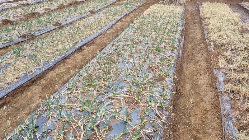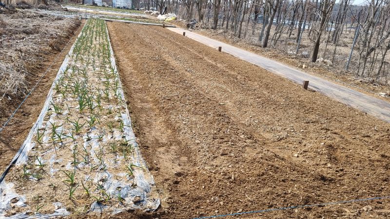 오늘은 홍산 마늘 양파 보온 비닐 모두베끼고 1차 추비하고, 1차 소독살포했읍니다.